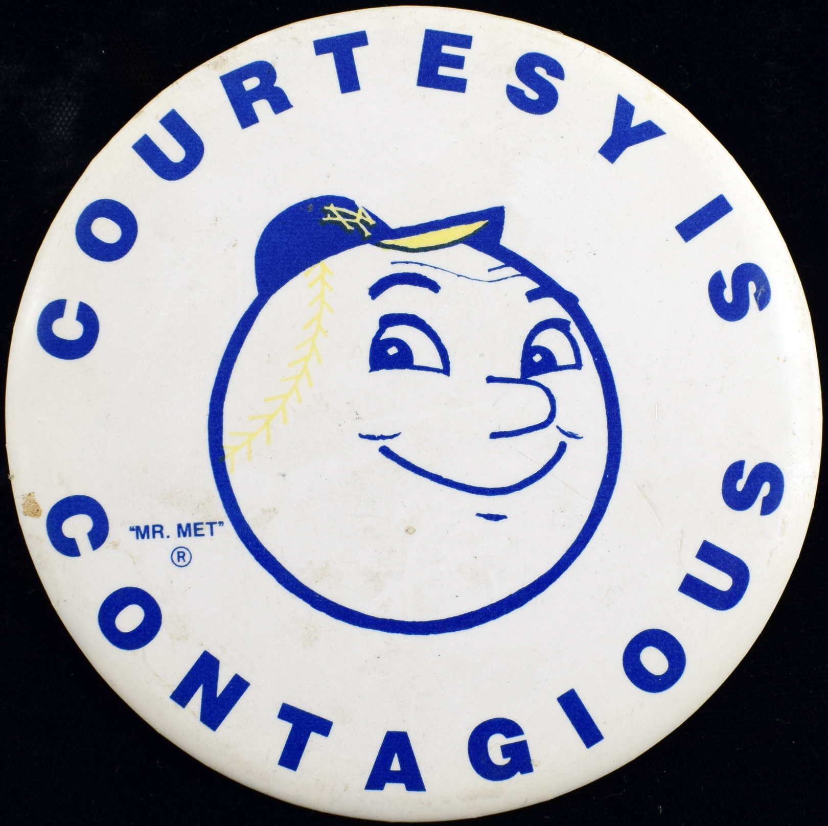 1965 Pin 1960s Mr. Met Scarce Courtesy Is Contagious Pin (four inch)