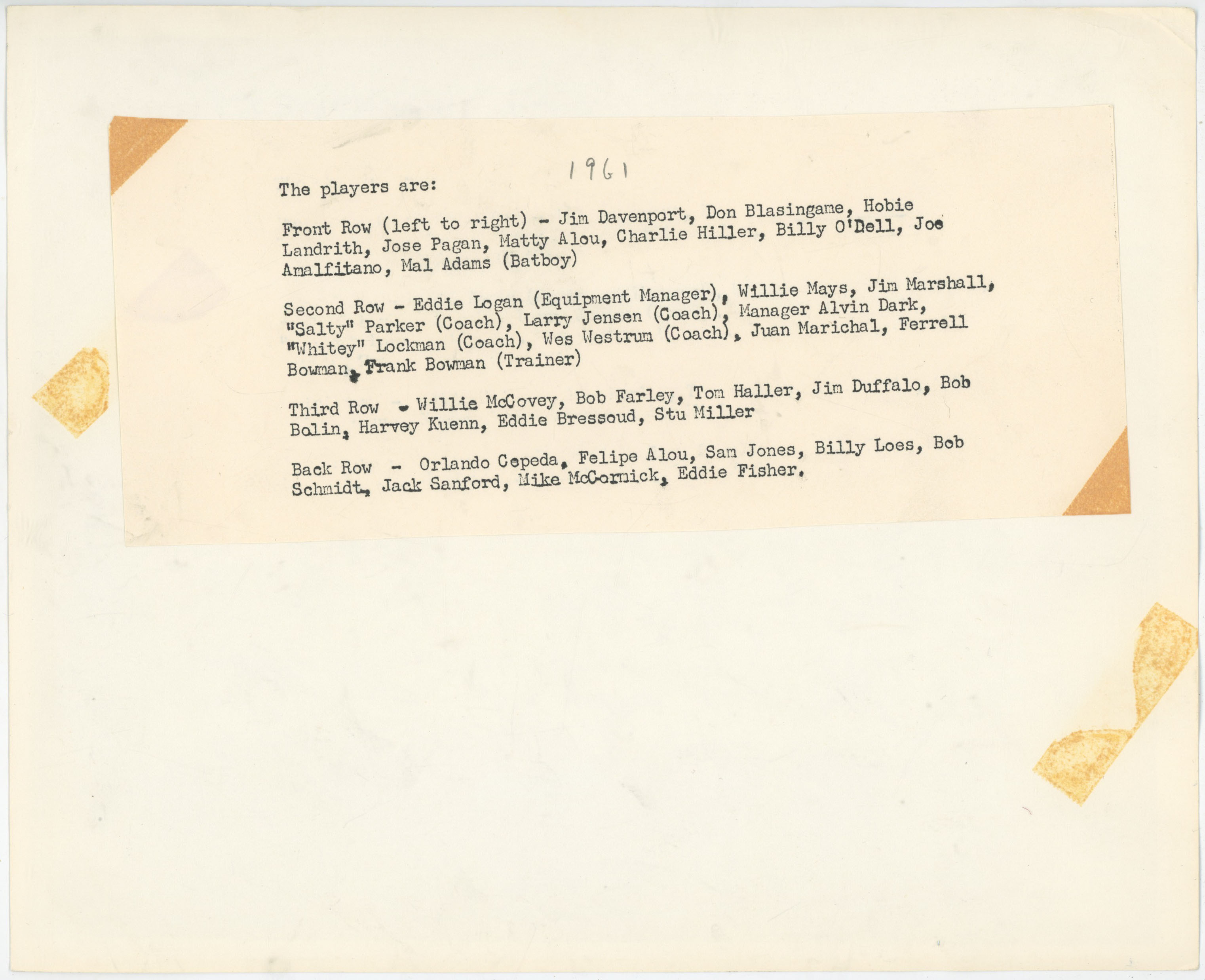 1964 Pittsburgh Pirates Spring Training Roster