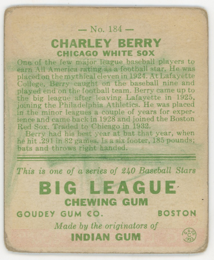 1933 Goudey 184 Berry Good