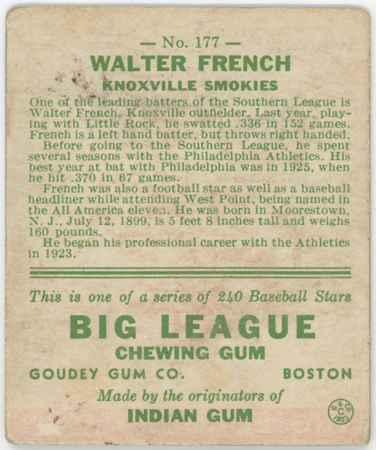 1933 Goudey 177 French GVG