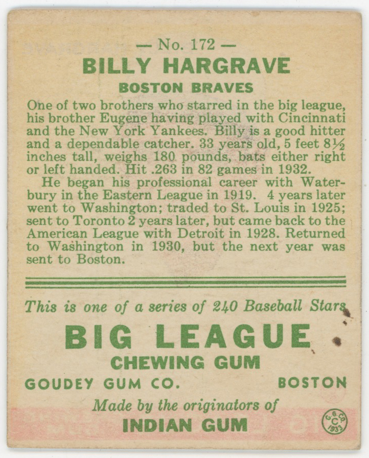1933 Goudey 172 Hargrave Good