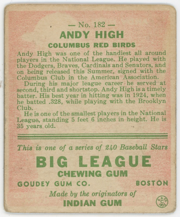 1933 Goudey 182 High Good
