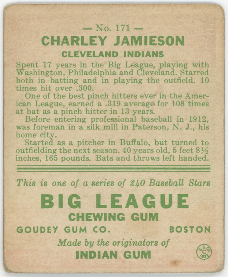 1933 Goudey 171 Jamieson GVG