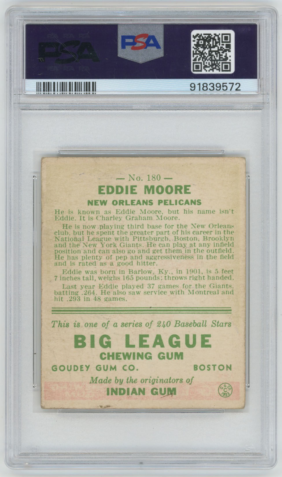 1933 Goudey 180 Moore PSA 3.5