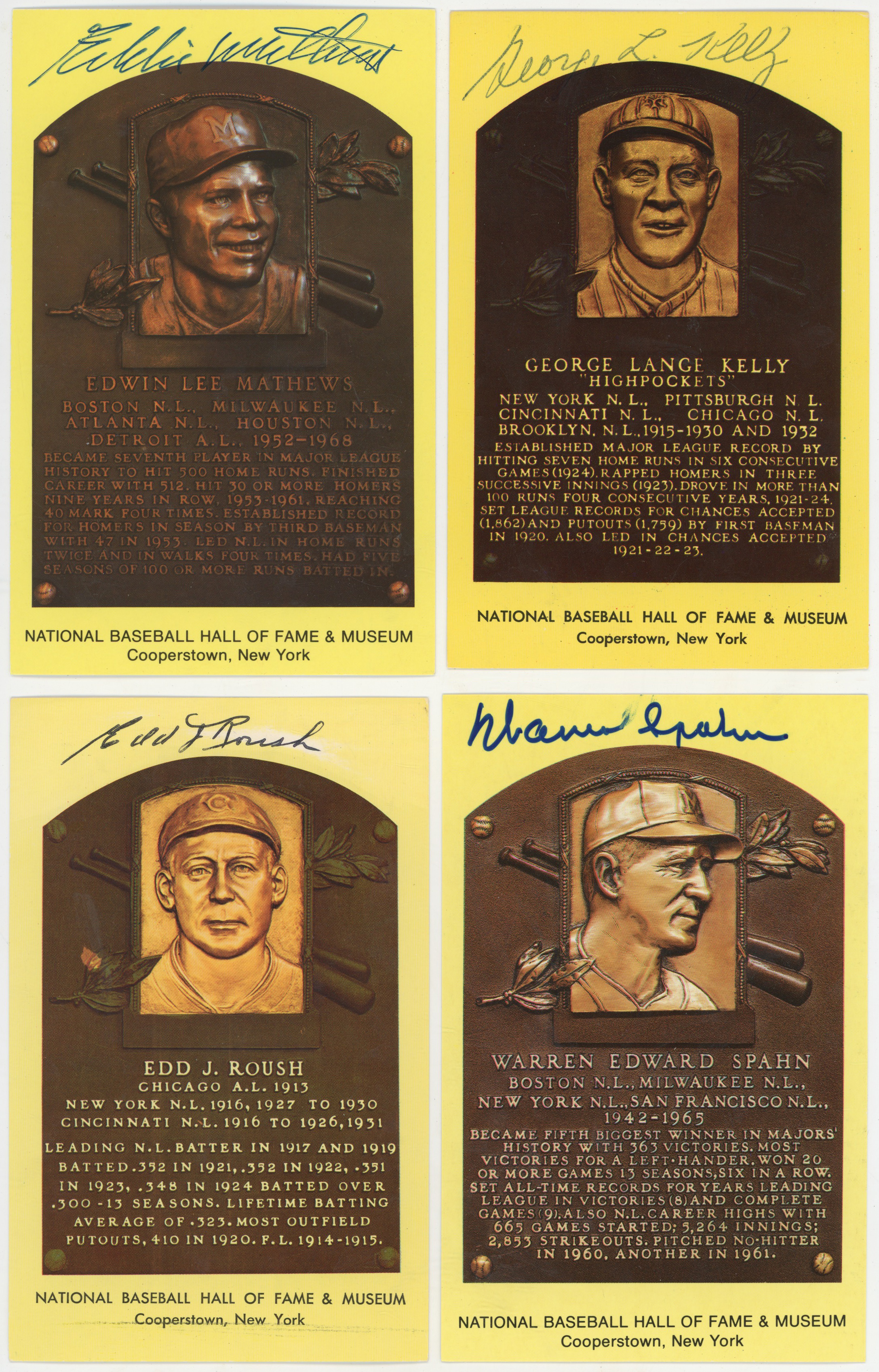 Yellow HOF Plaque 15 different w/Ford, Spahn 9
