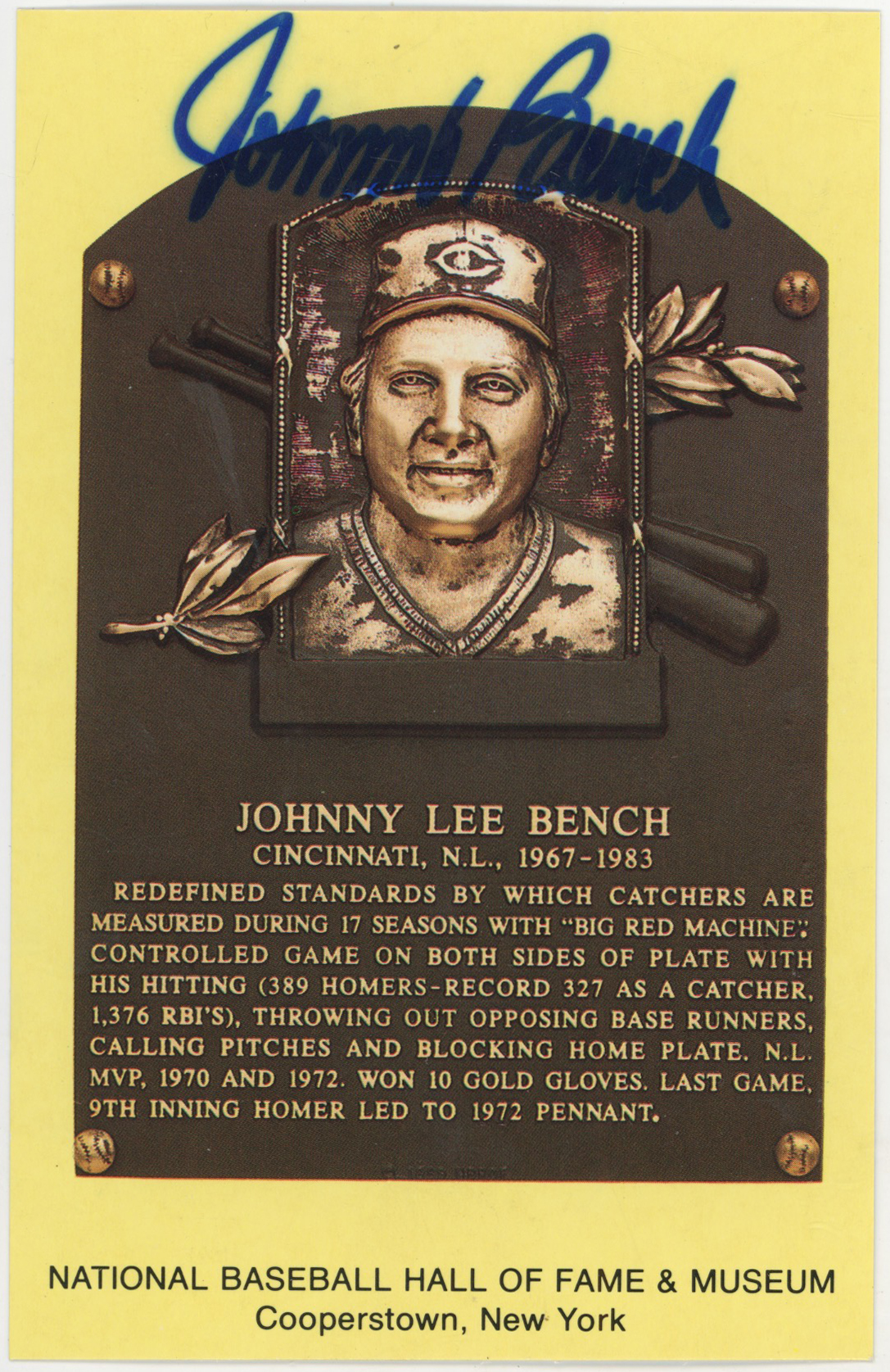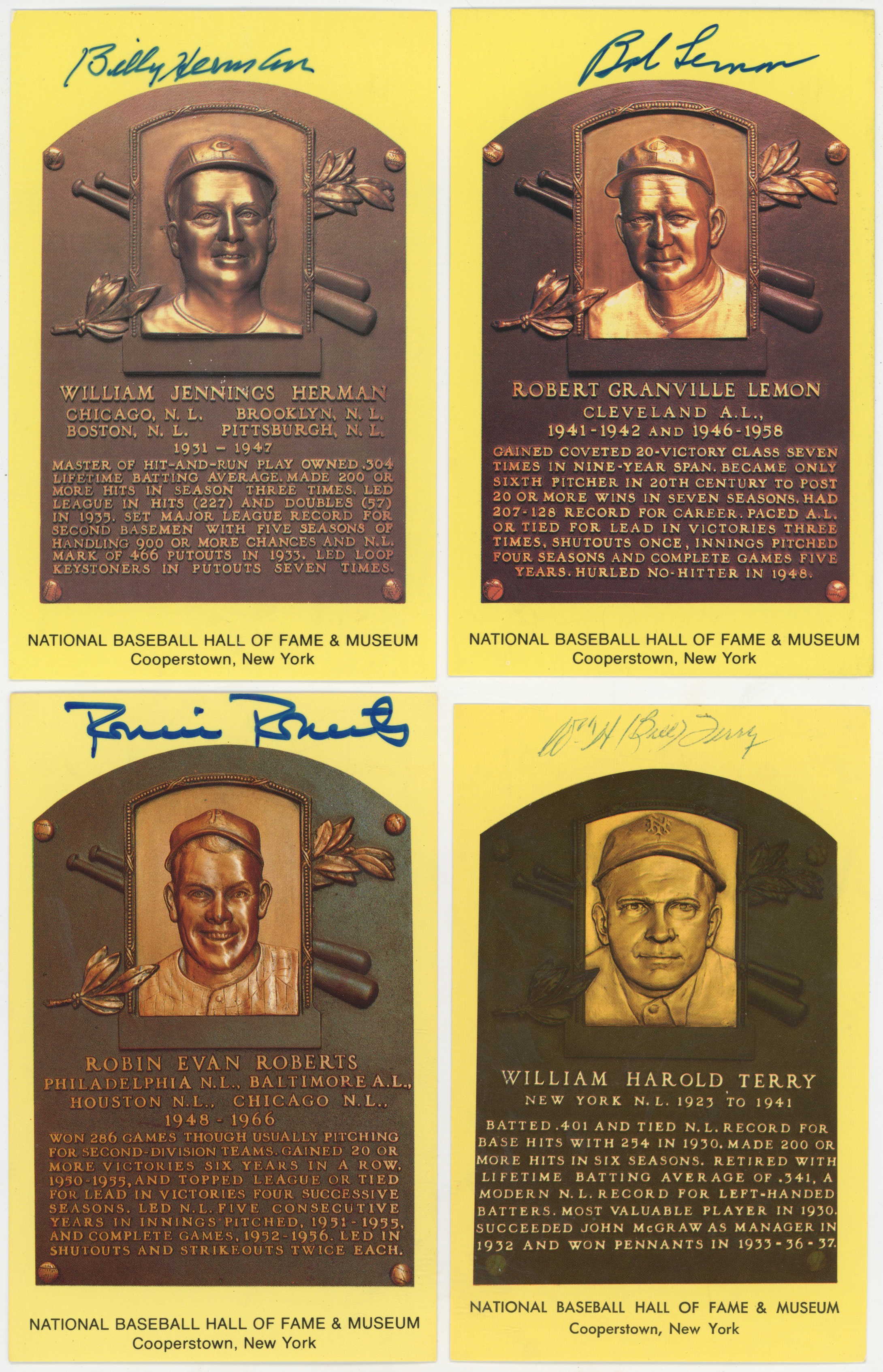Yellow HOF Plaque Lot of 45 signed plaques w/Dickey, Gomez, Mathews, Roush 8.5