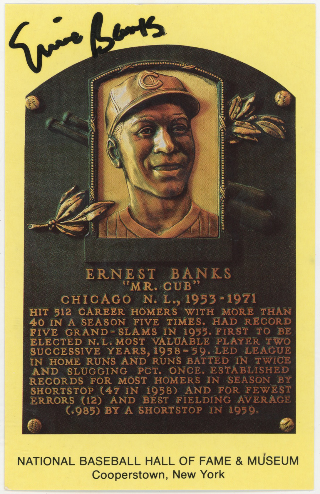 Yellow HOF Plaque 11 Ernie Banks 9.5