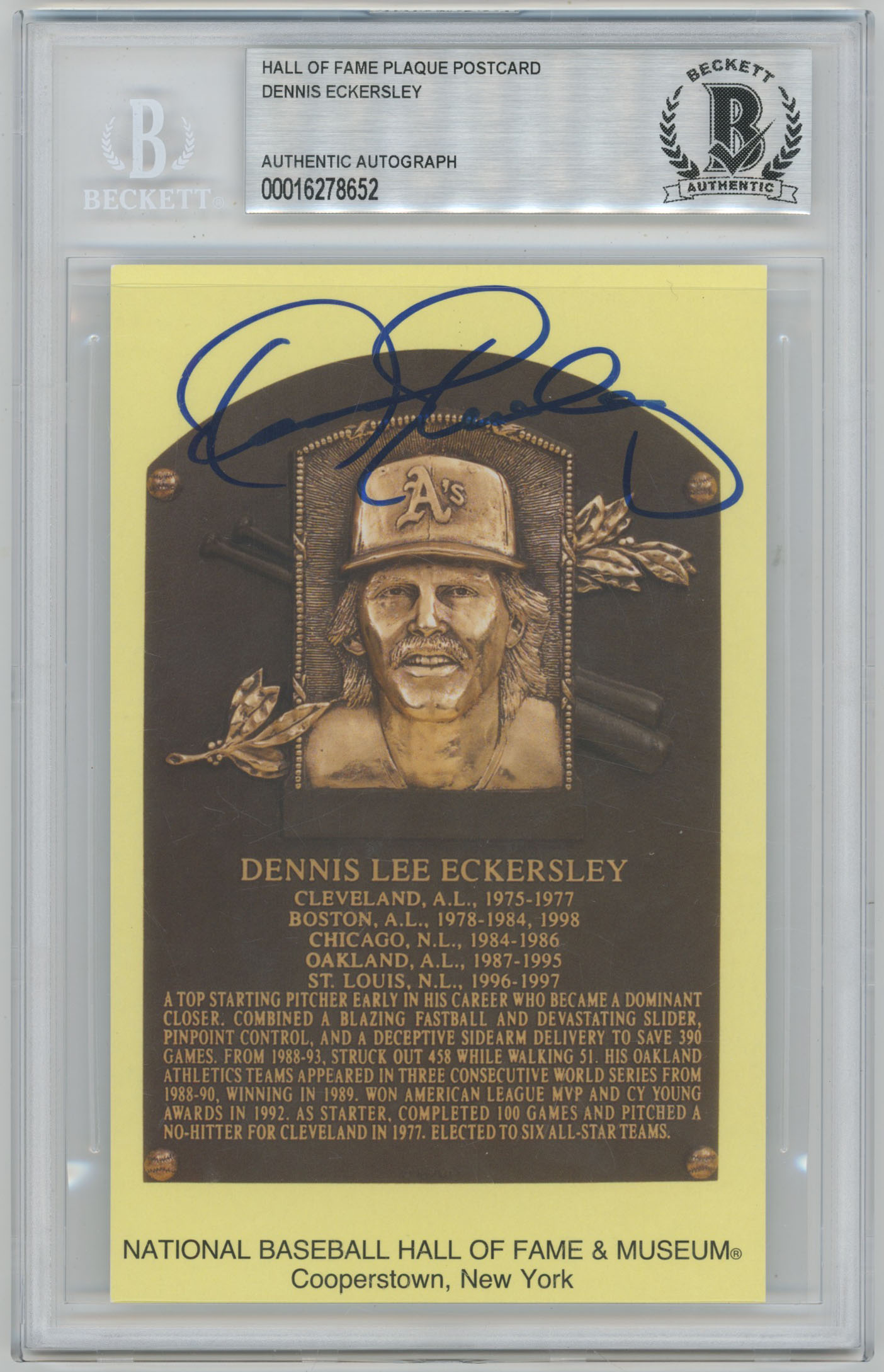 Yellow HOF Plaque 44 Dennis Eckersley 9.5 (Beckett slabbed)
