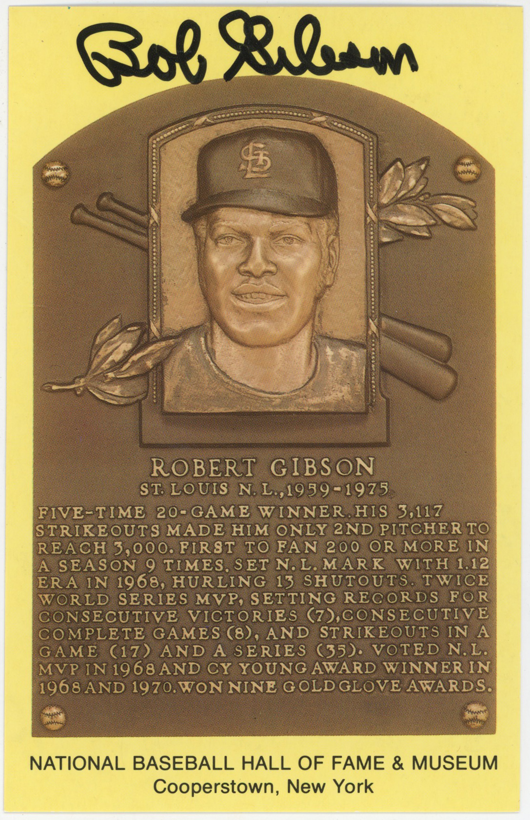 Yellow HOF Plaque 56 Bob Gibson 9.5