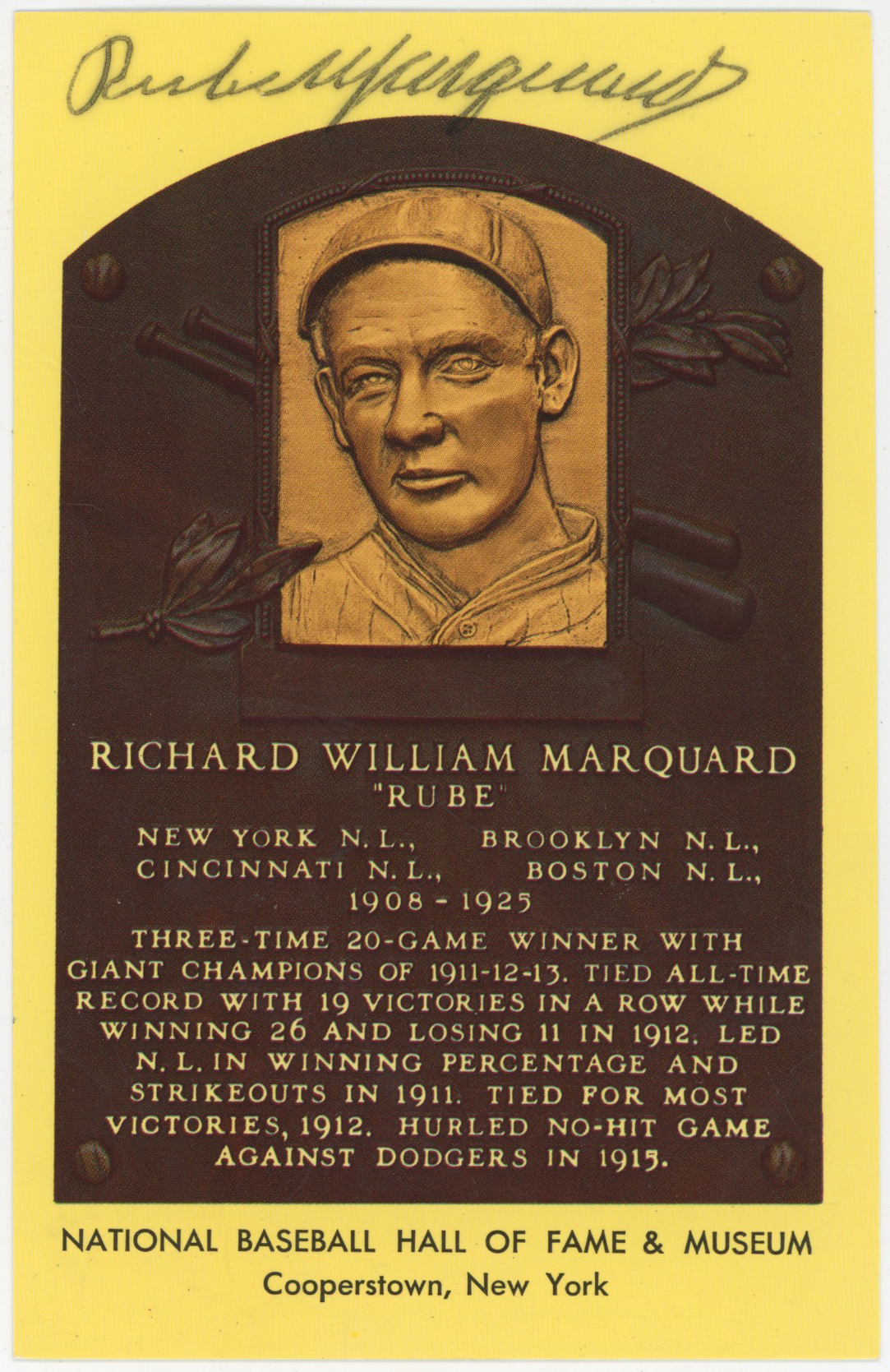 Yellow HOF Plaque 109 Rube Marquard 8