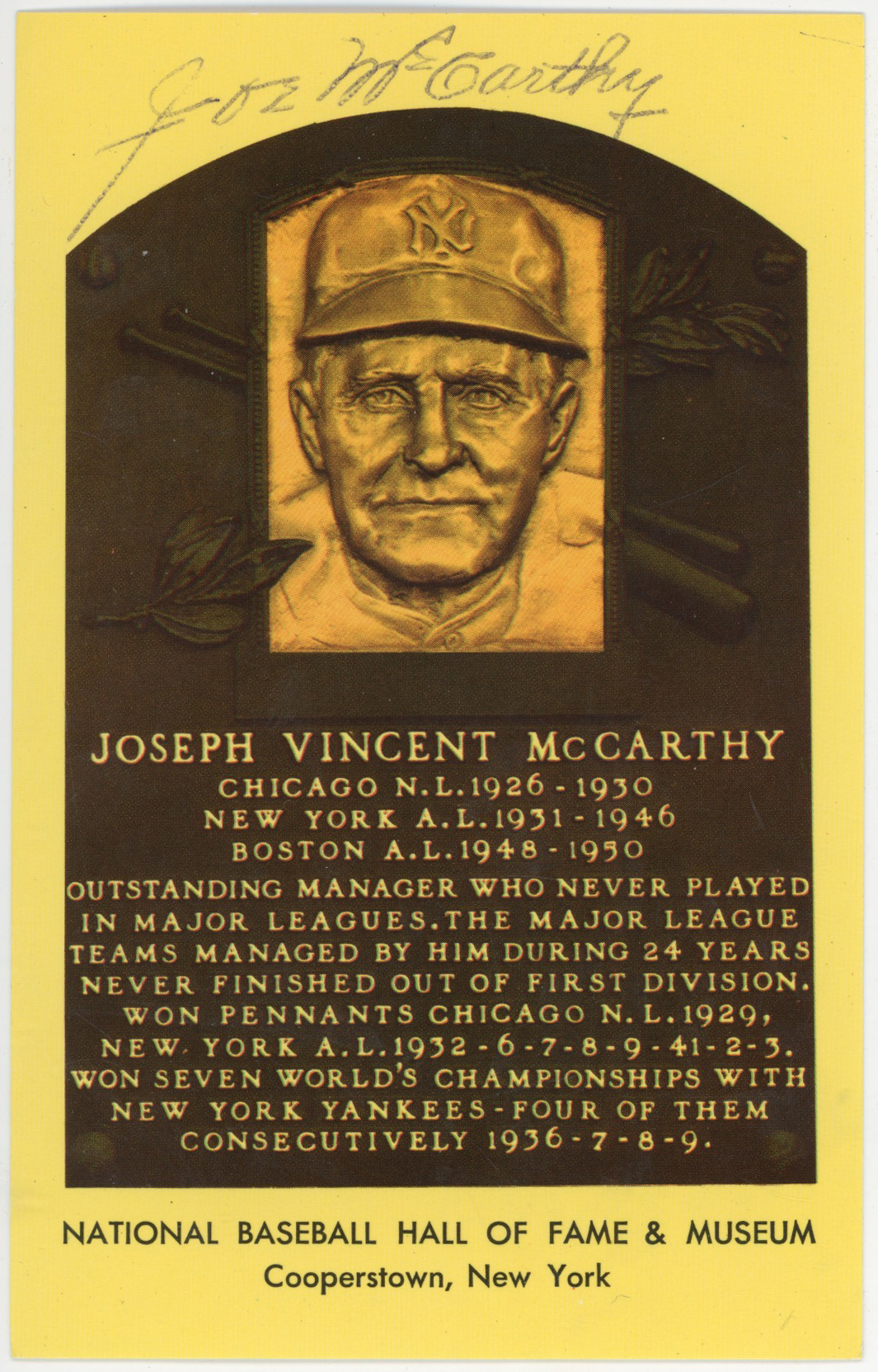 Yellow HOF Plaque 59 Lefty Gomez 9