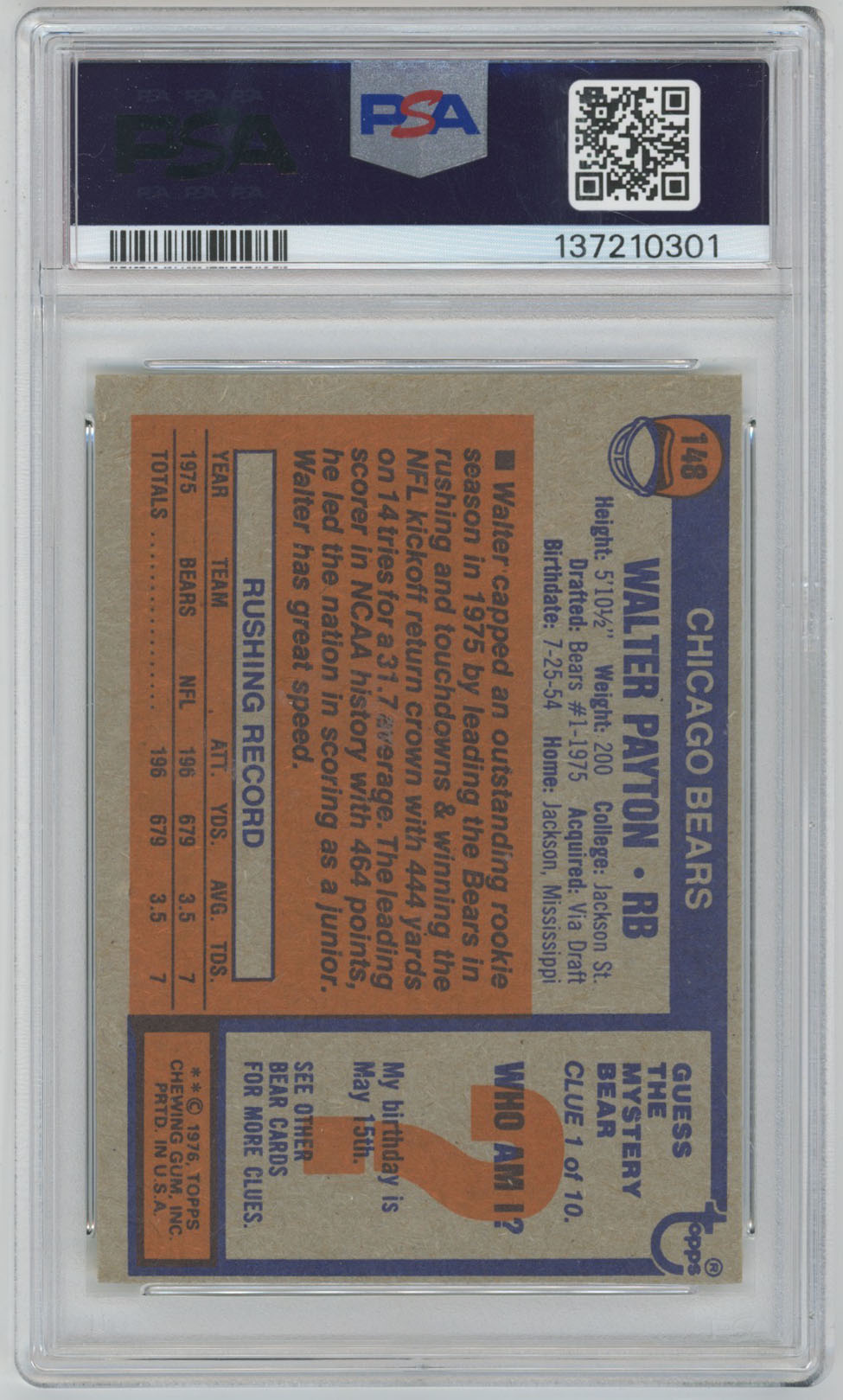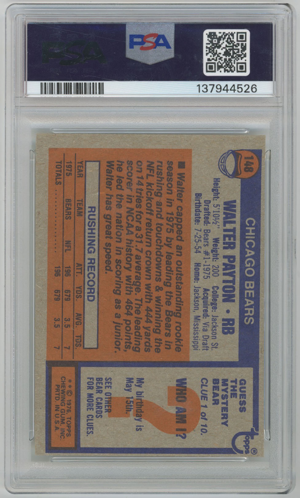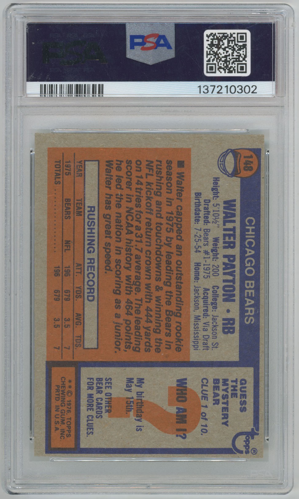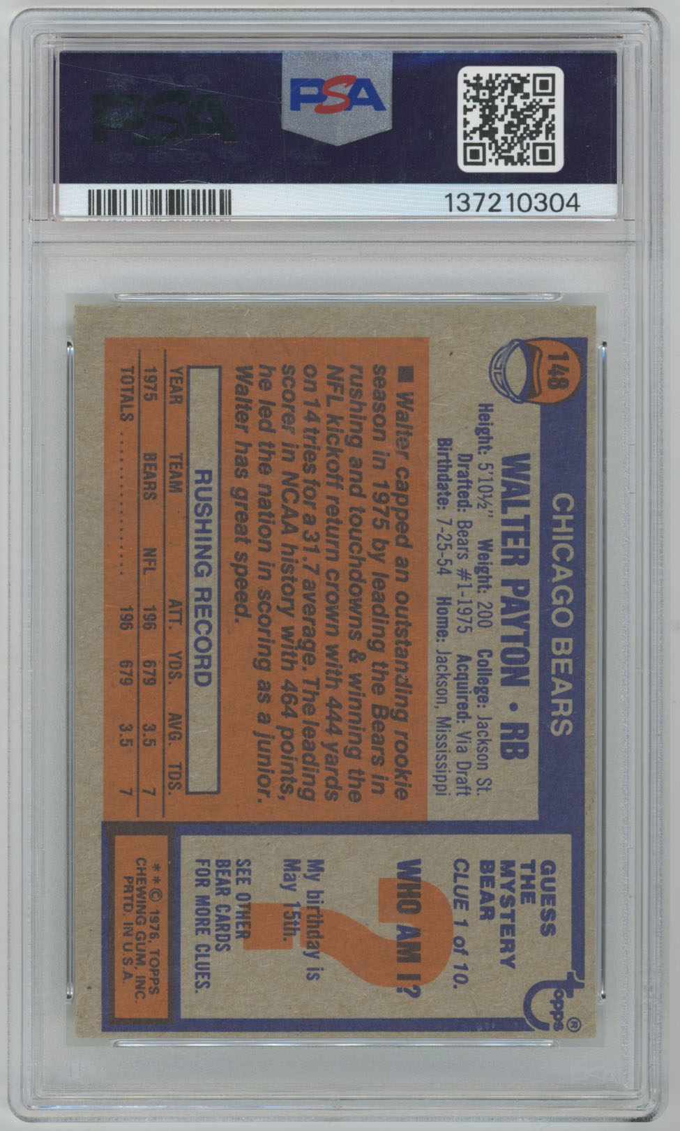 1976 Topps 148 Payton RC PSA 6