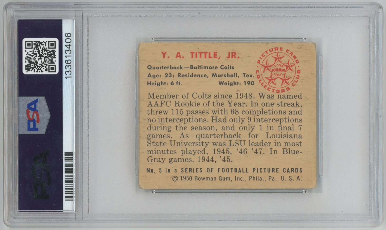 1950 Bowman 5 Tittle/RC PSA 1.5