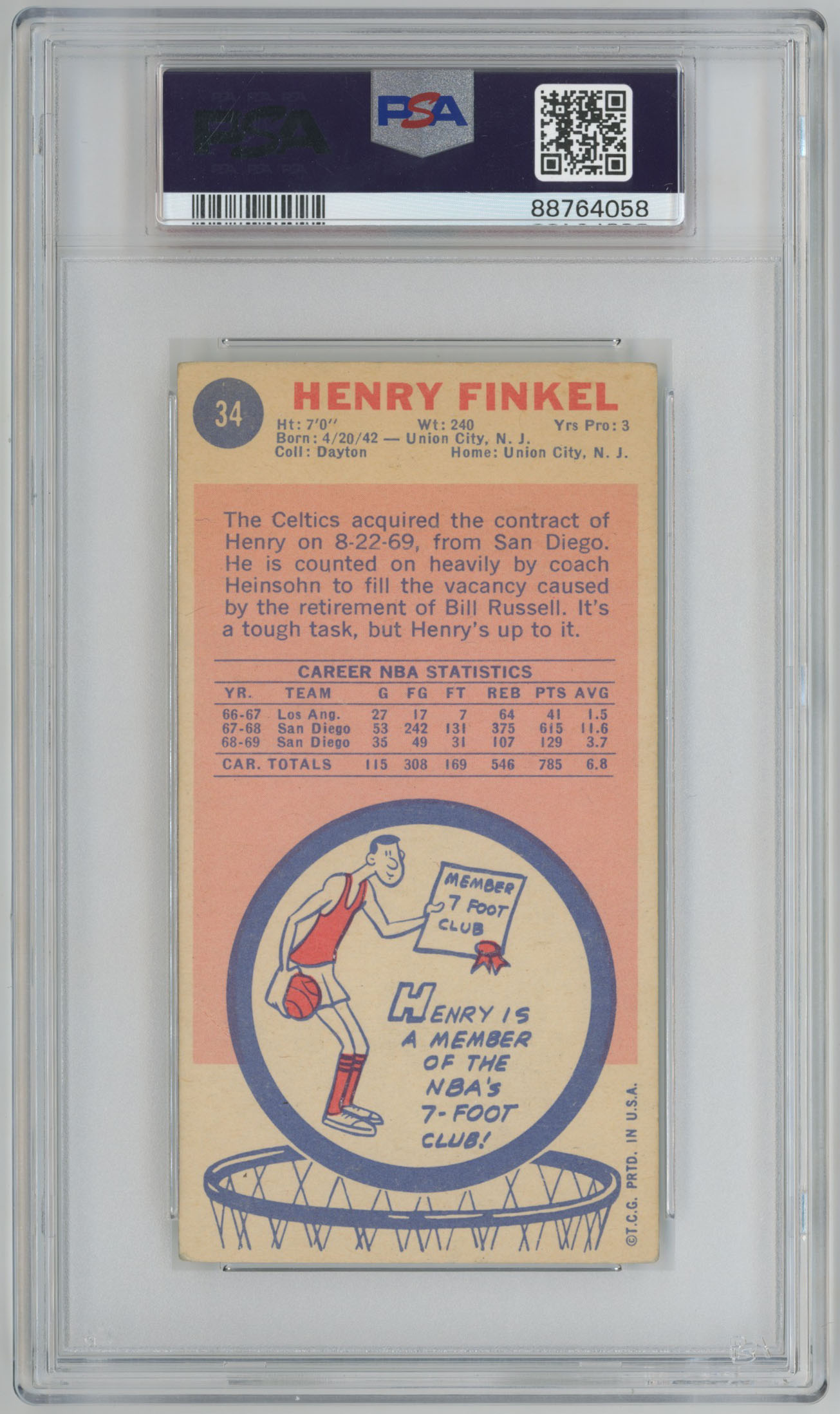 1969 Topps 34 Henry Finkel Signed Rookie Card PSA 3.5/10