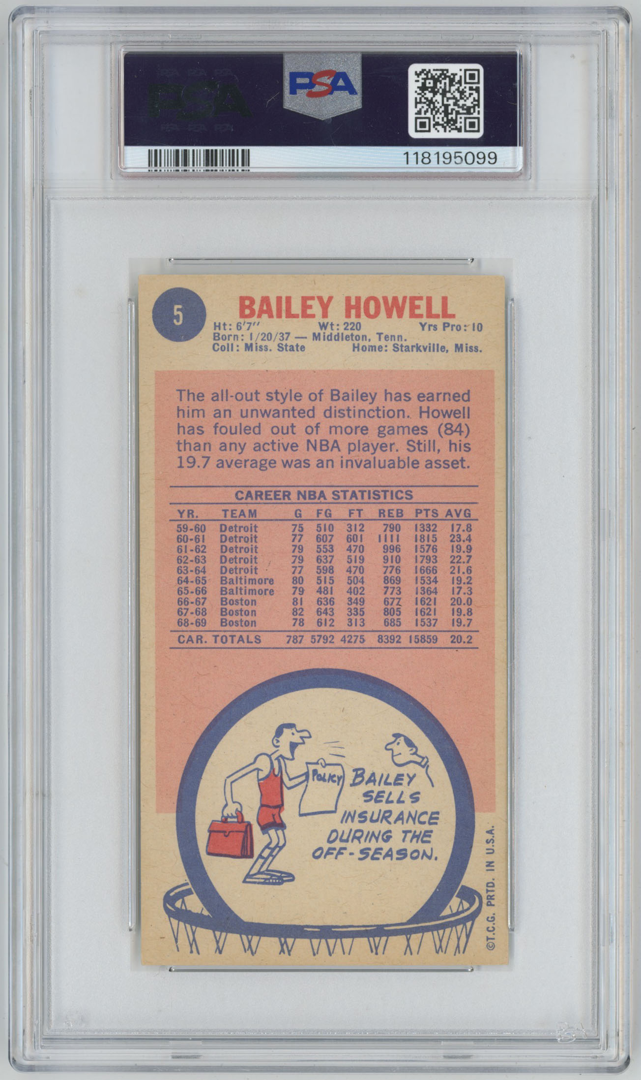 1969 Topps 5 Bailey Howell Card PSA 4/10