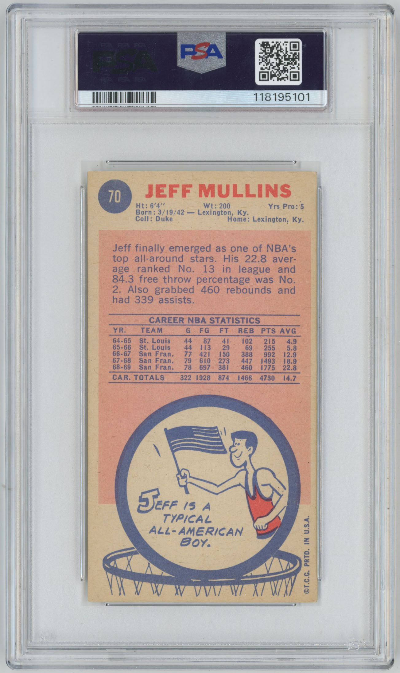 1969 Topps 70 Jeff Mullins Signed Rookie Card PSA 3/10