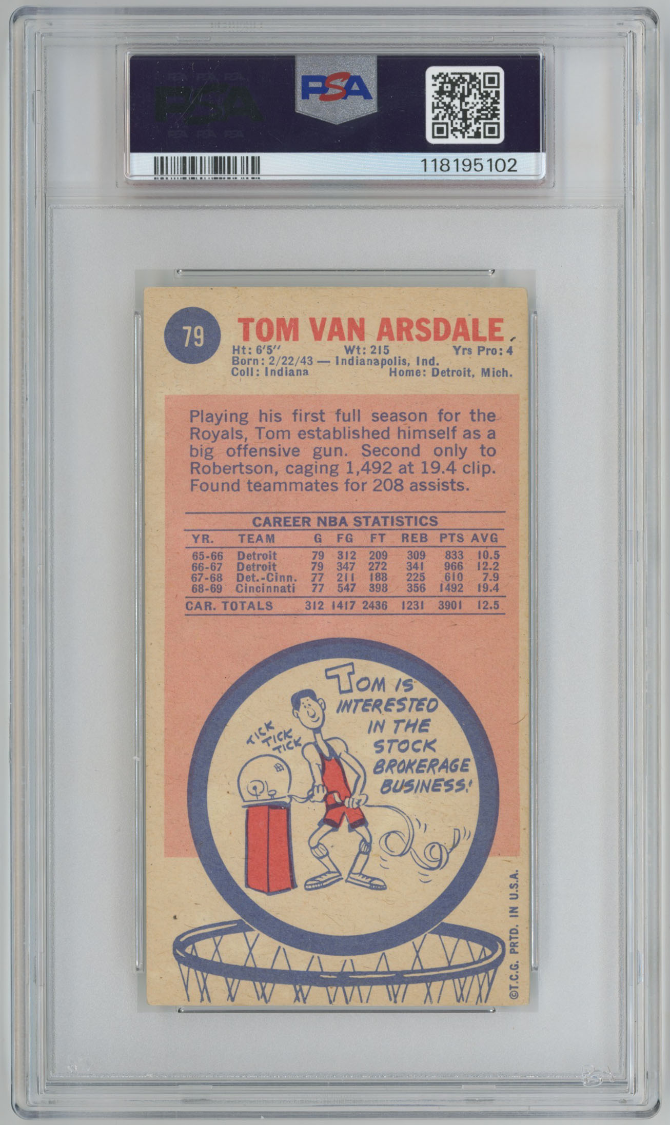 1969 Topps 79 Tom Van Arsdale Signed Rookie Card PSA 4/10