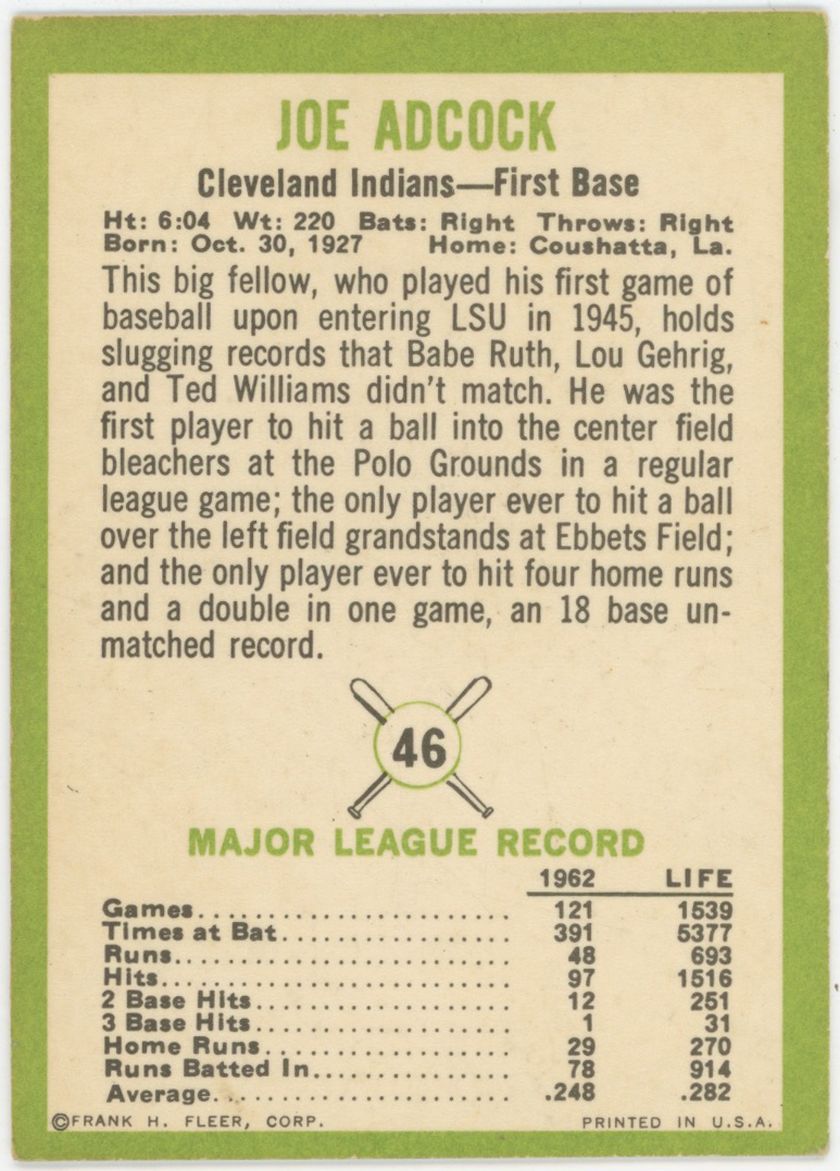 1963 Fleer Near-Set (60 pcs) w/Adcock, Gibson, Spahn Ex-Mt