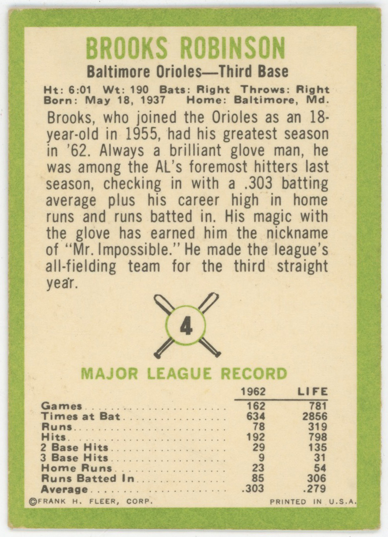 1963 Fleer 4 B Robinson VG-Ex/Ex