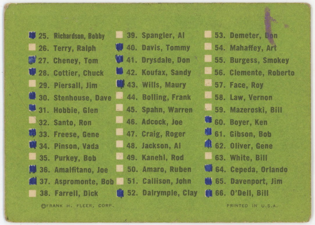 1963 Fleer 61 Gibson VG-Ex/Ex