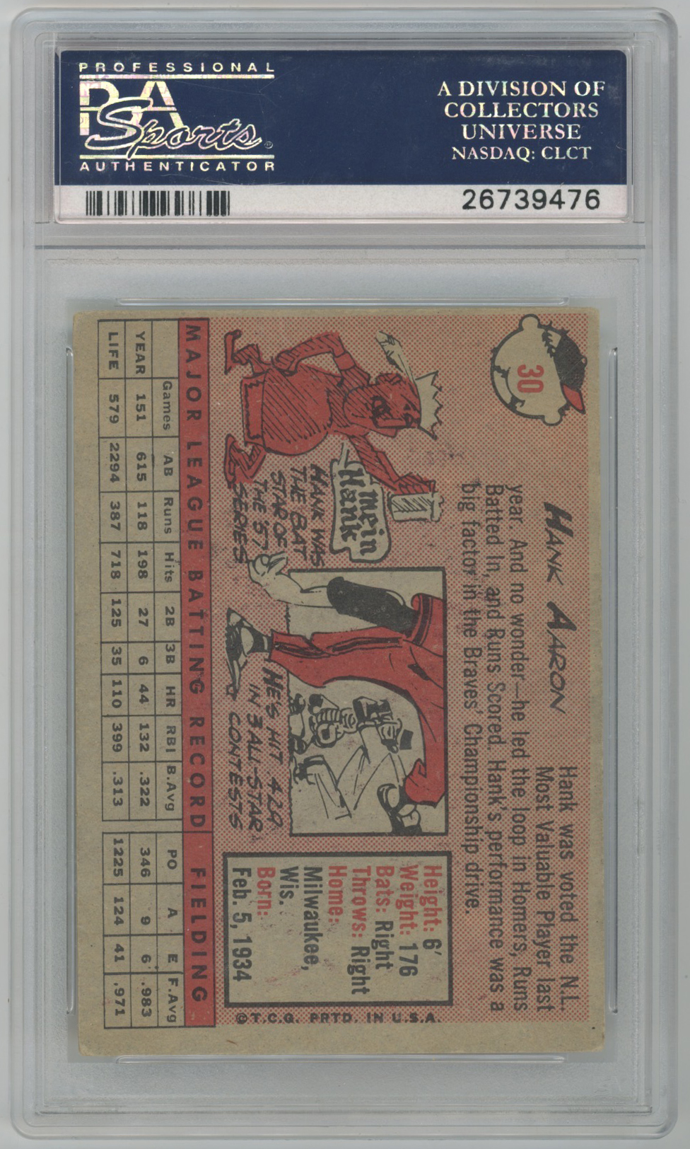 1958 Topps 30.1 Aaron PSA 4