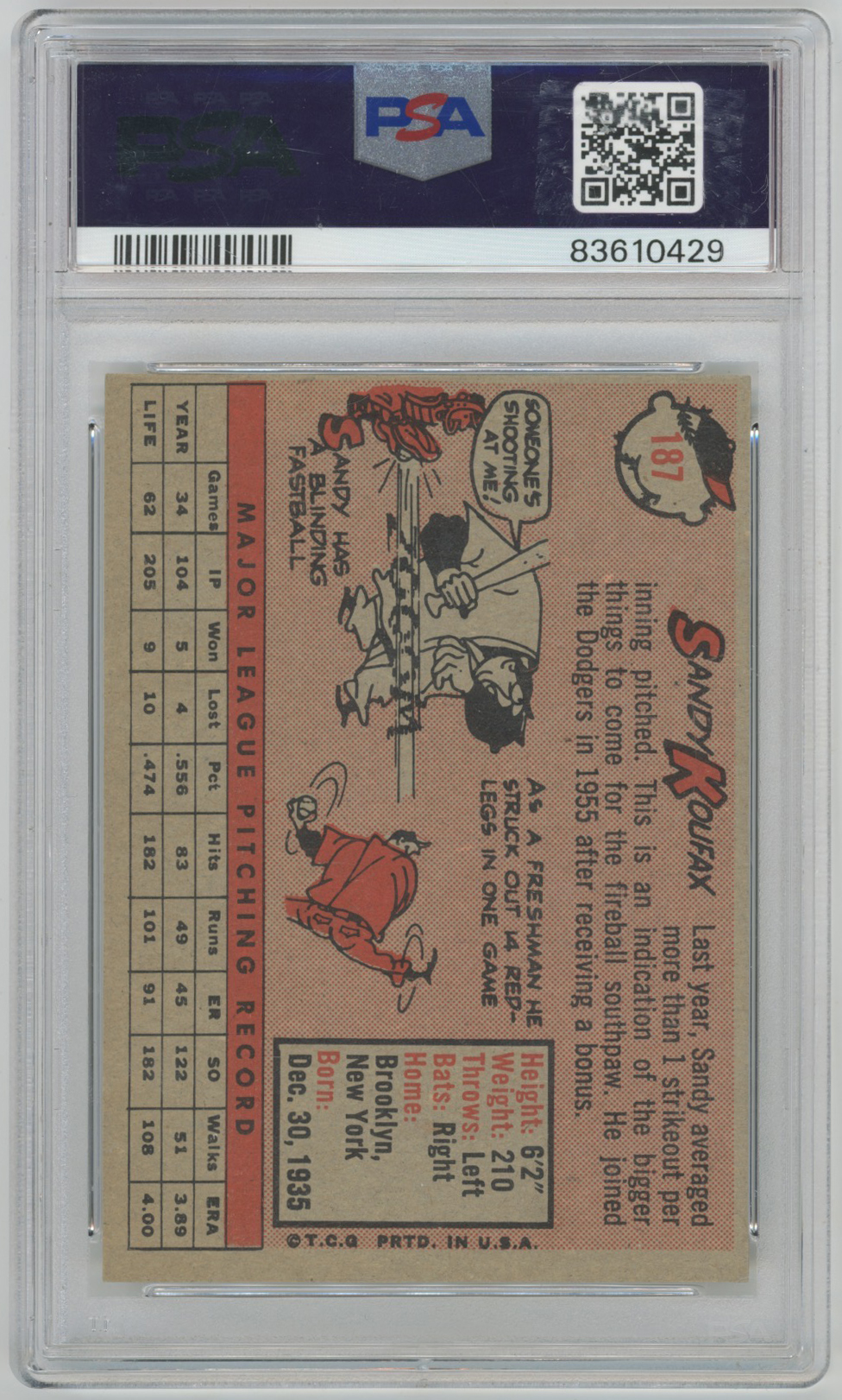 1958 Topps 187 Koufax PSA 6