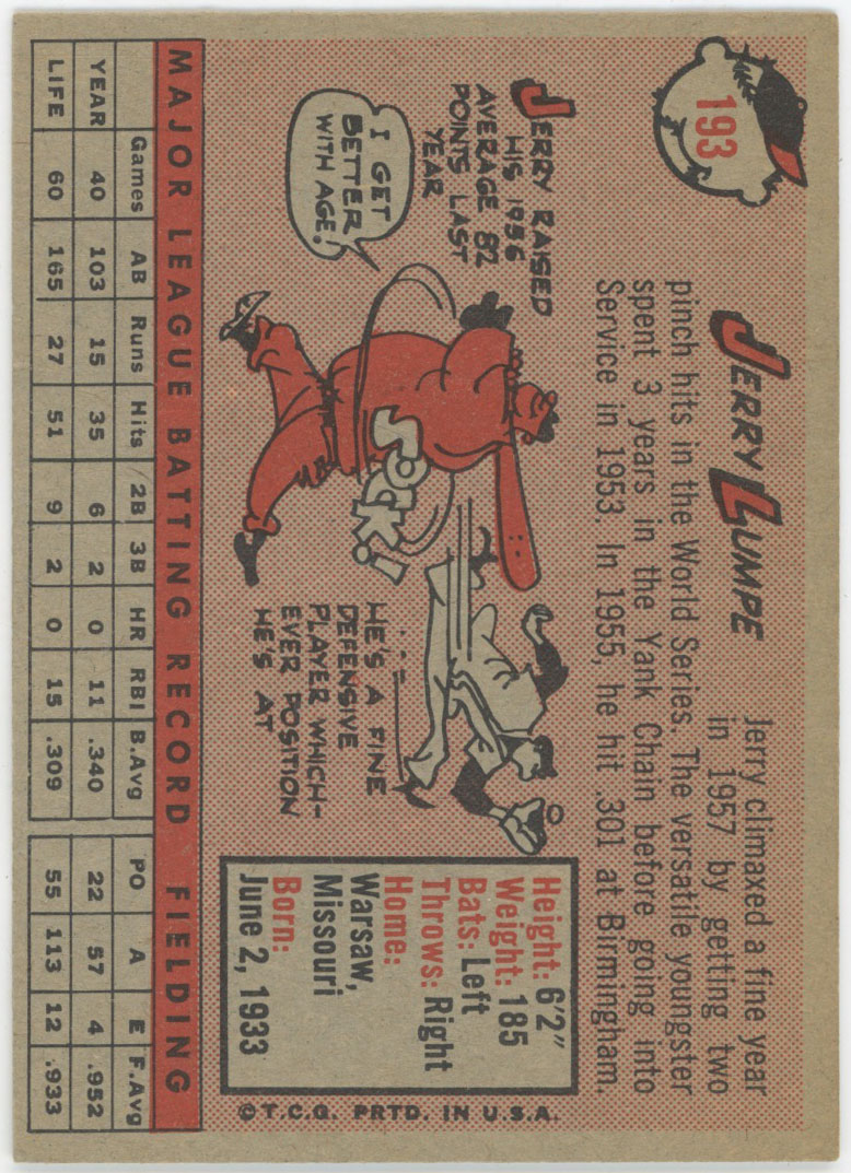 1958 Topps 193 Lumpe NM