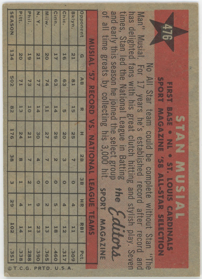 1958 Topps 476 Musial AS Ex