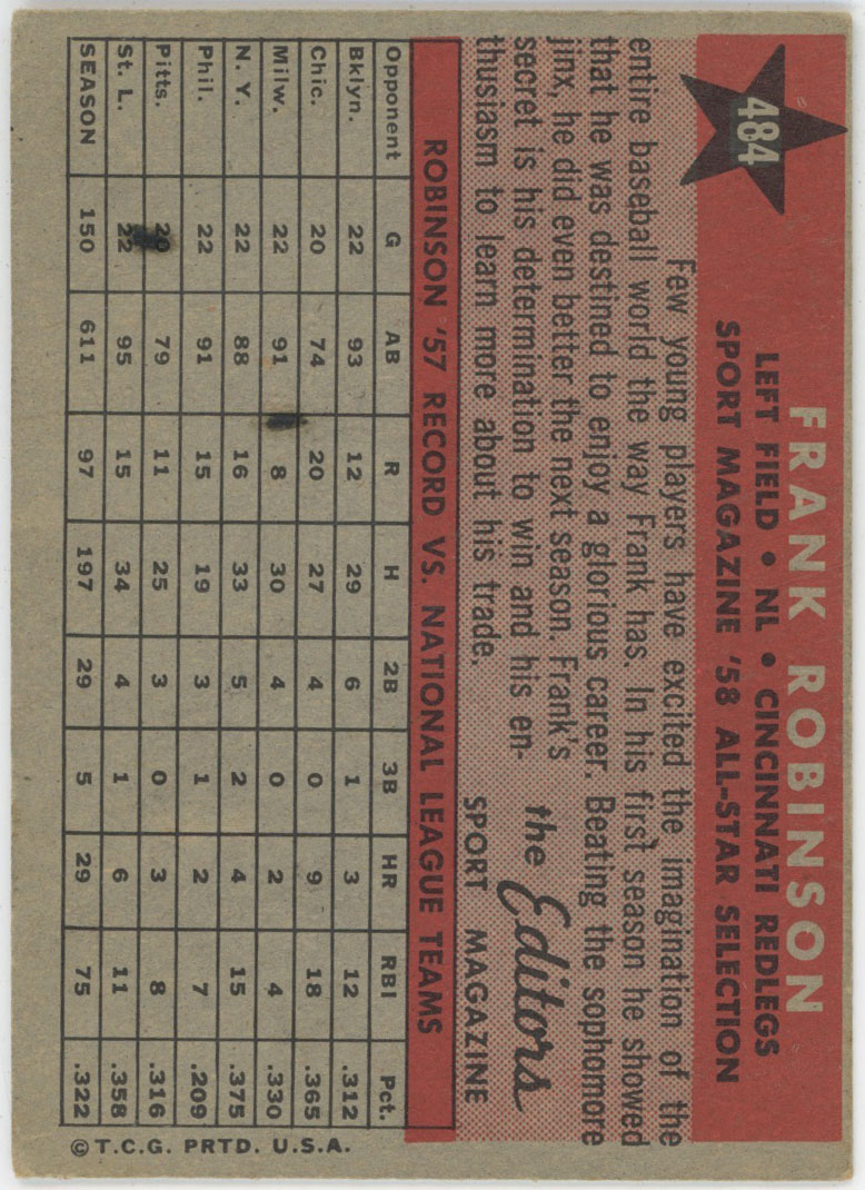 1958 Topps 484 F. Robinson AS VG-Ex