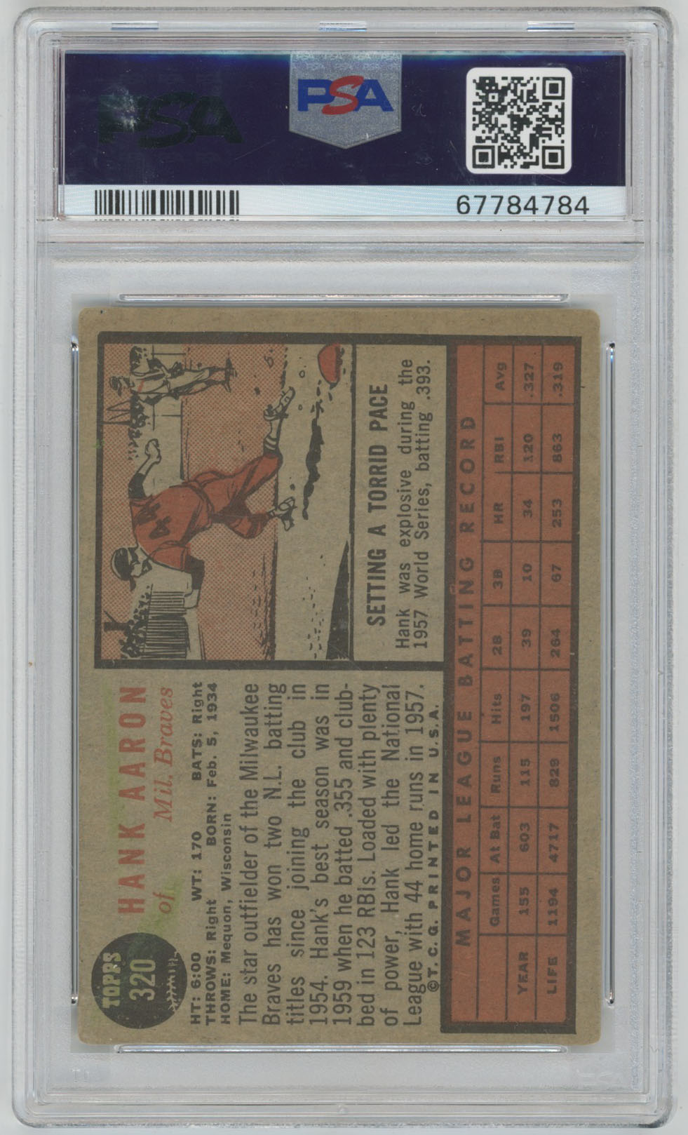 1962 Topps 320 Aaron PSA 6