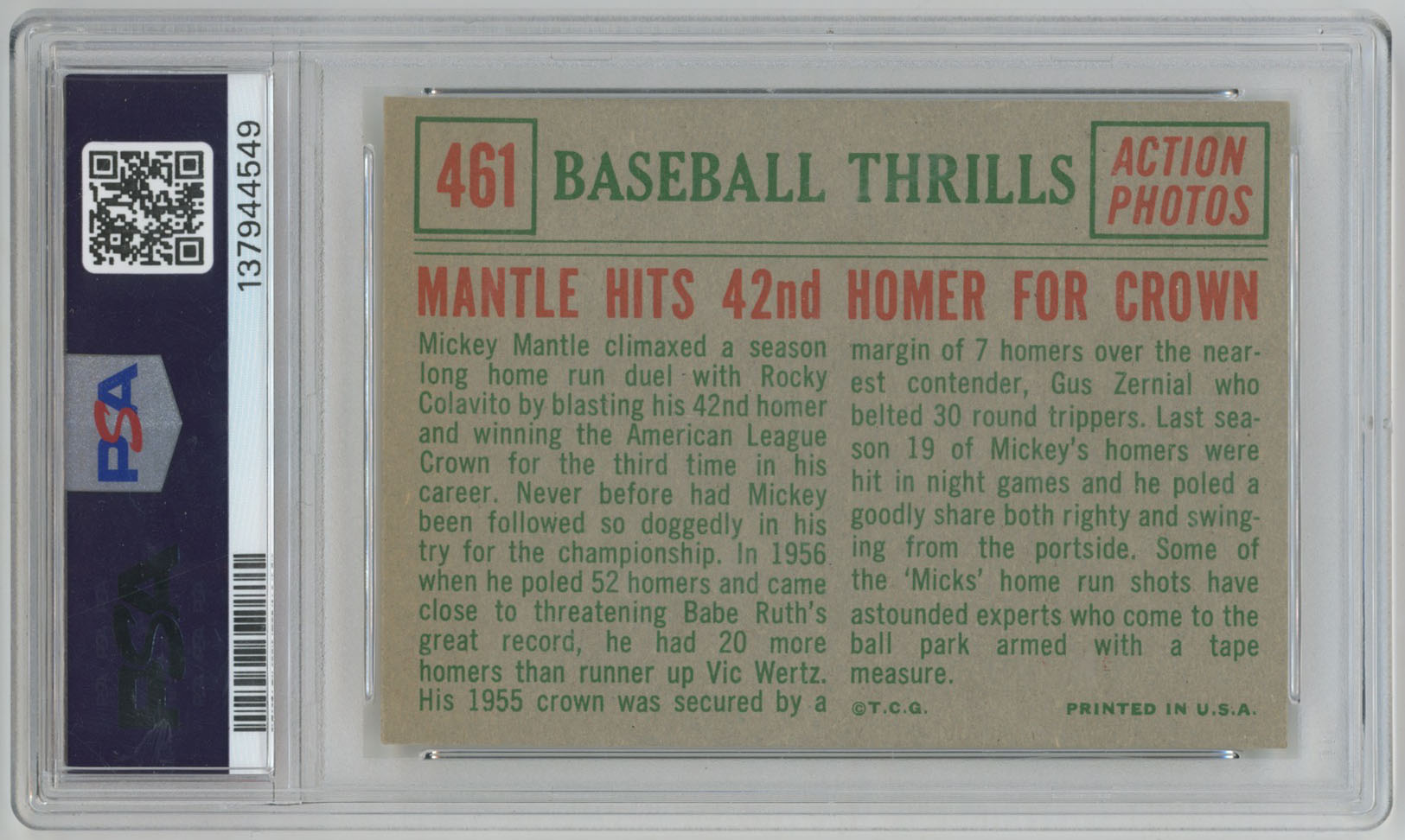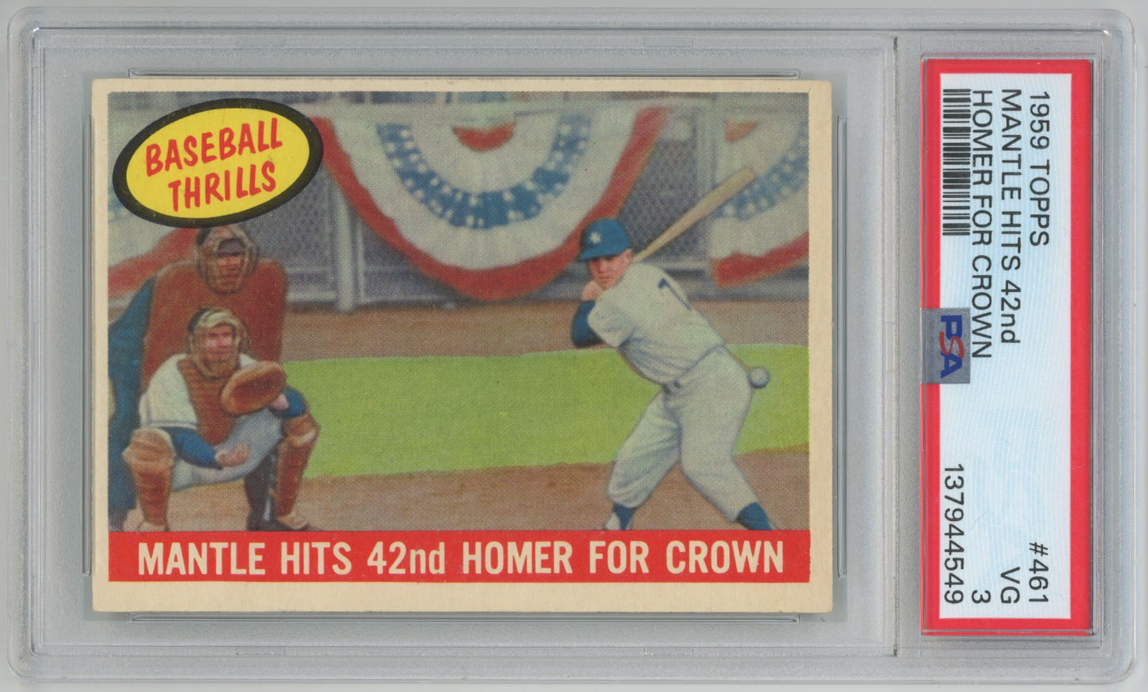 1959 Topps 461 Mickey Mantle HR PSA 3