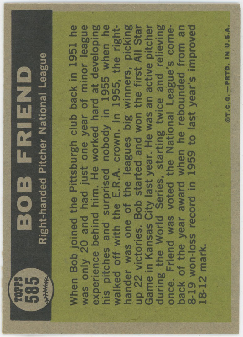 1961 Topps 585 Friend AS Ex+