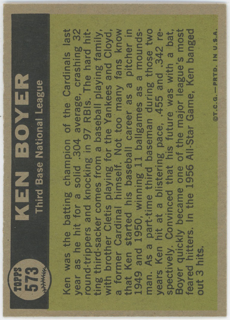 1961 Topps 573 K. Boyer AS Ex-Mt+