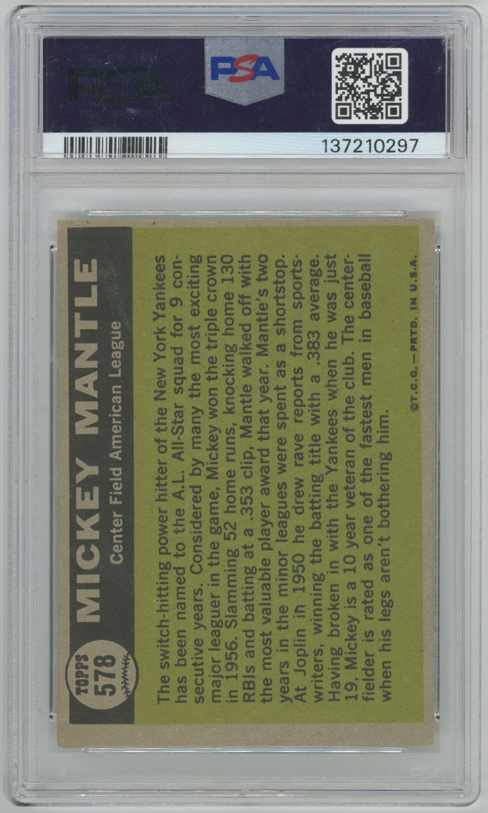 1961 Topps 578 Mantle AS PSA 8 oc