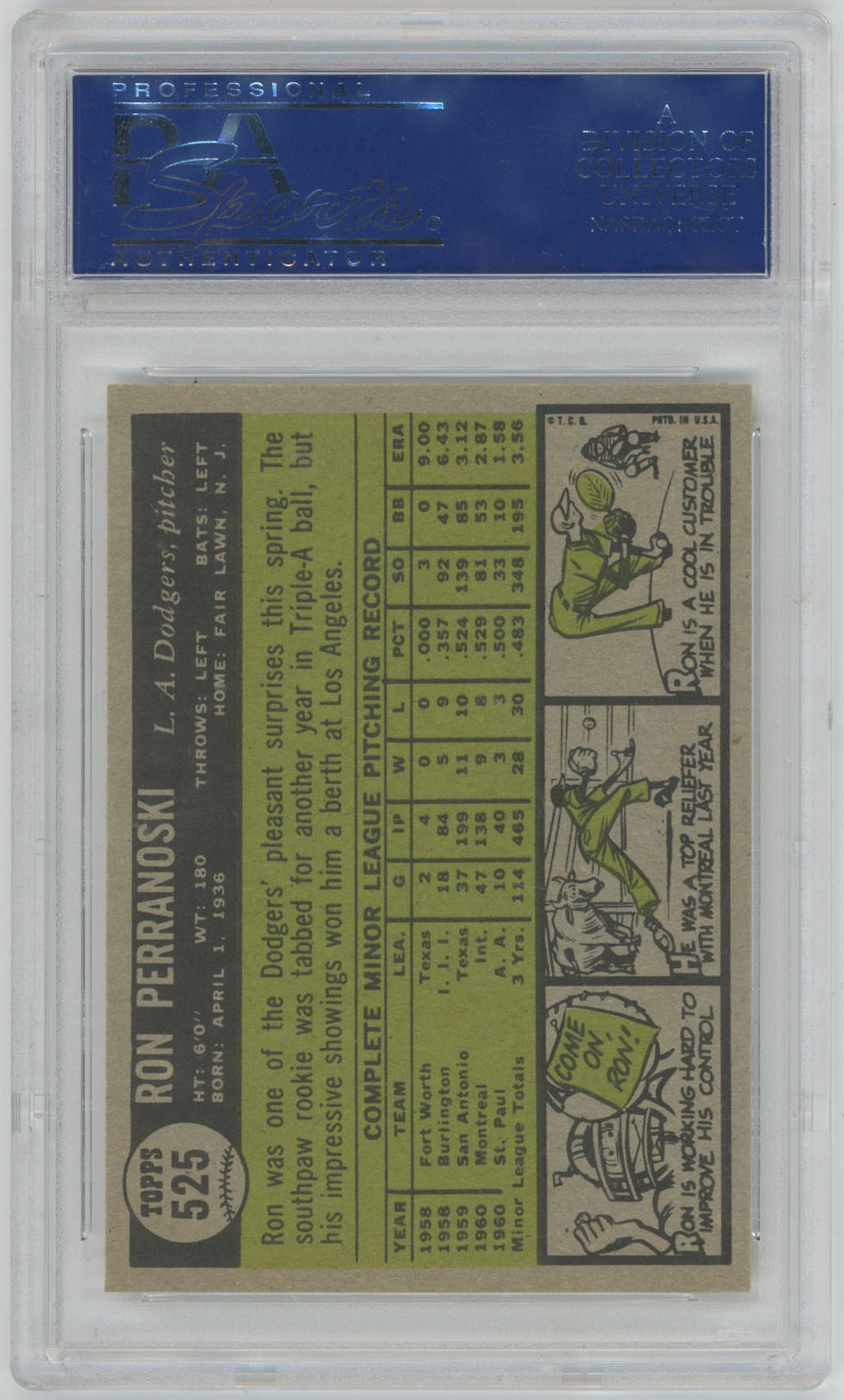 1961 Topps 525 Perranoski RC PSA 8