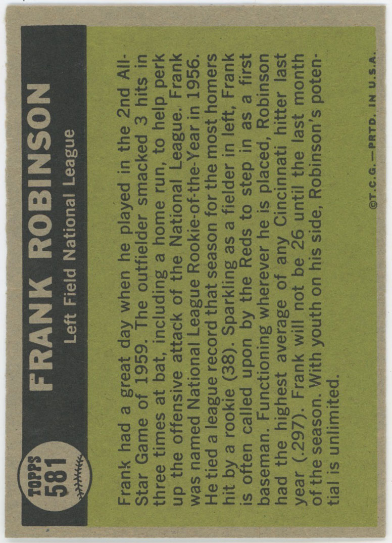1961 Topps 581 F. Robinson AS Ex