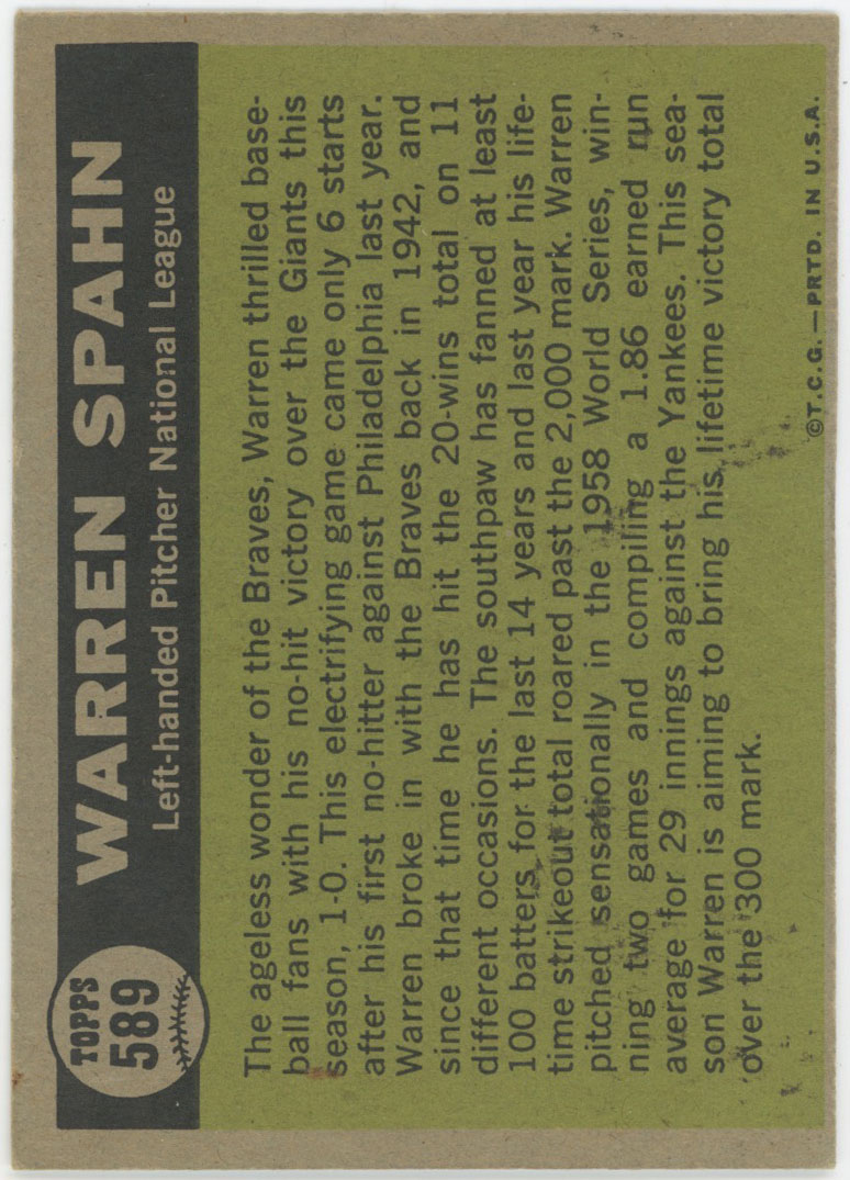 1961 Topps 589 Spahn AS VG+