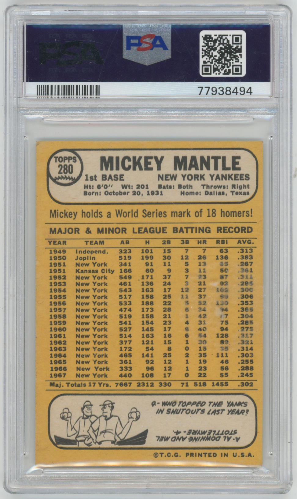 1968 Topps 490 Killebrew/Mays/Mantle PSA 8 o/c
