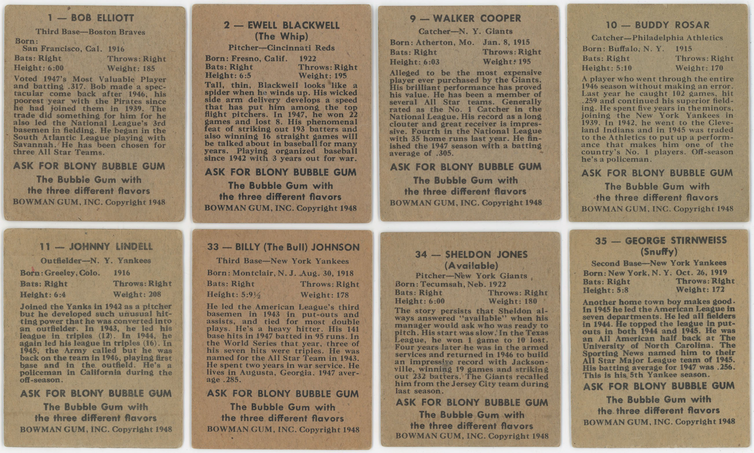 1948 Bowman 34 different w/Henrich, Reiser VG-Ex