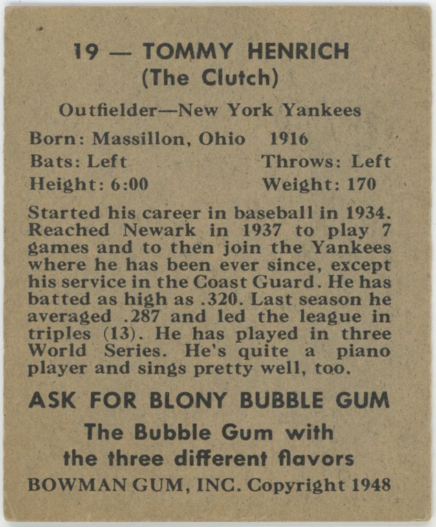 1948 Bowman 19 Henrich VG-Ex/Ex