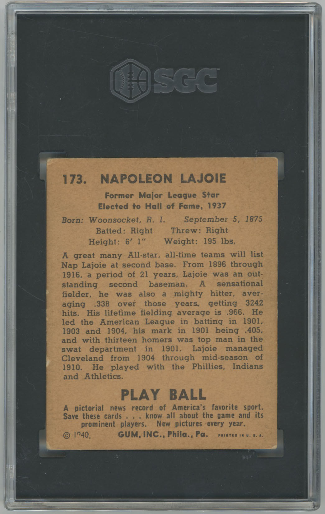 1940 Play Ball 173 Lajoie SGC 4