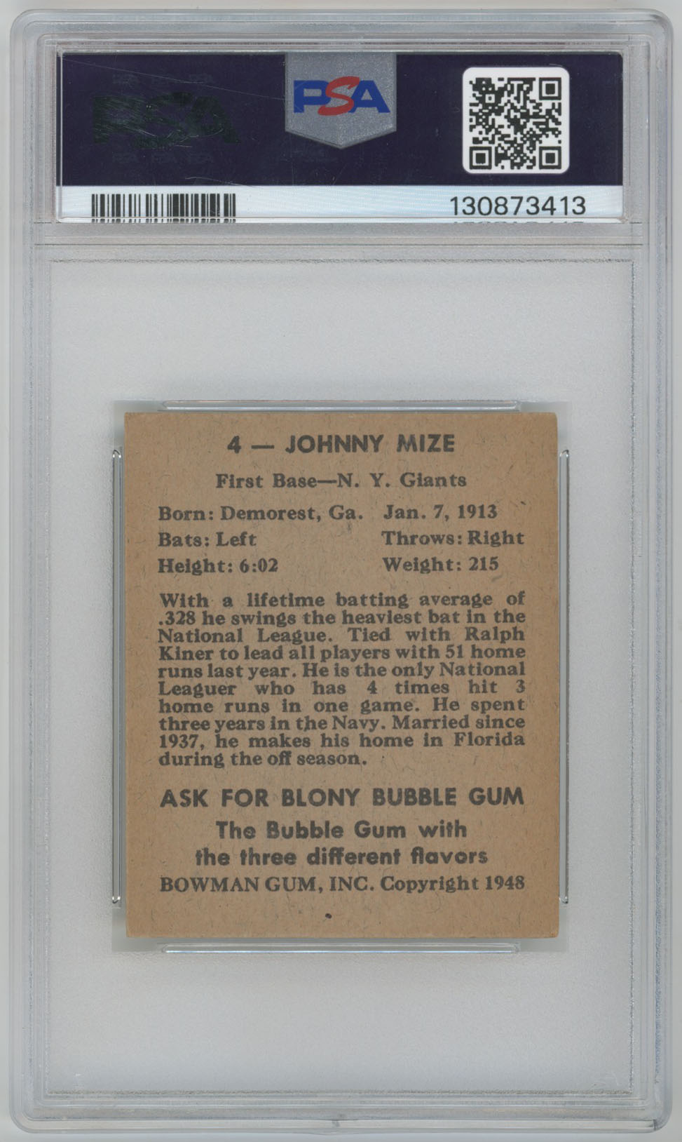 1948 Bowman 4 Mize PSA 4
