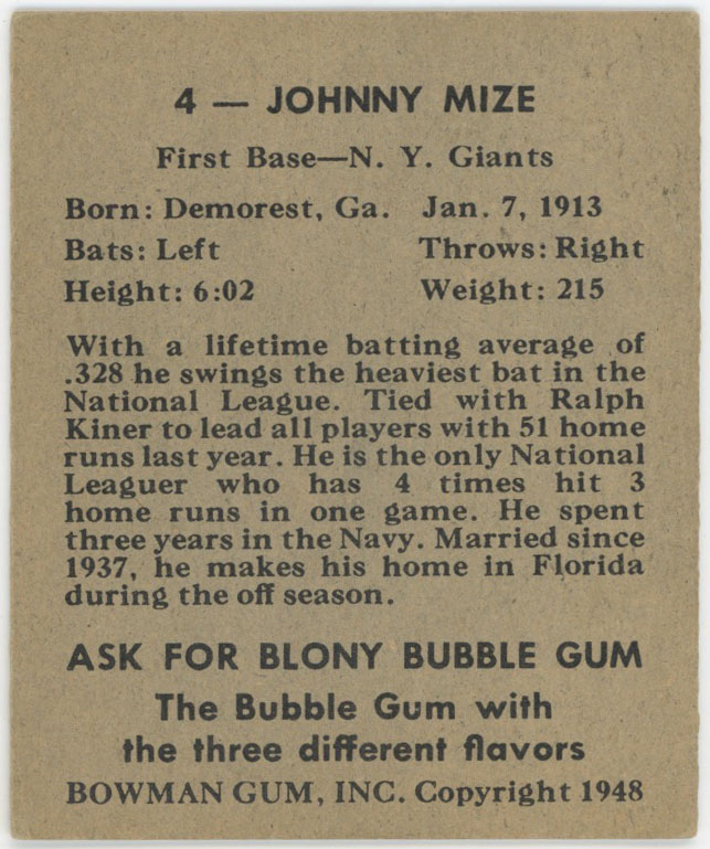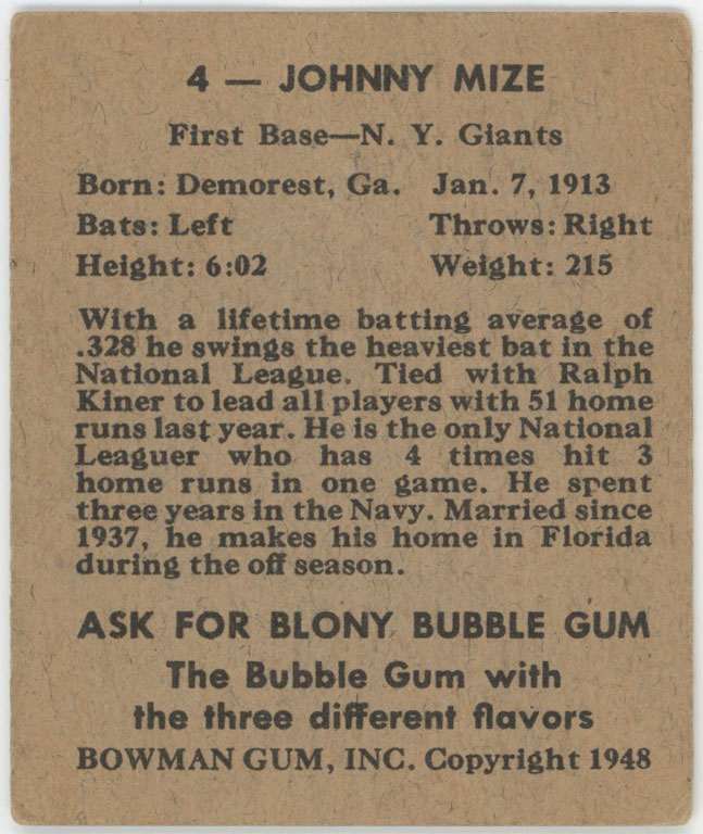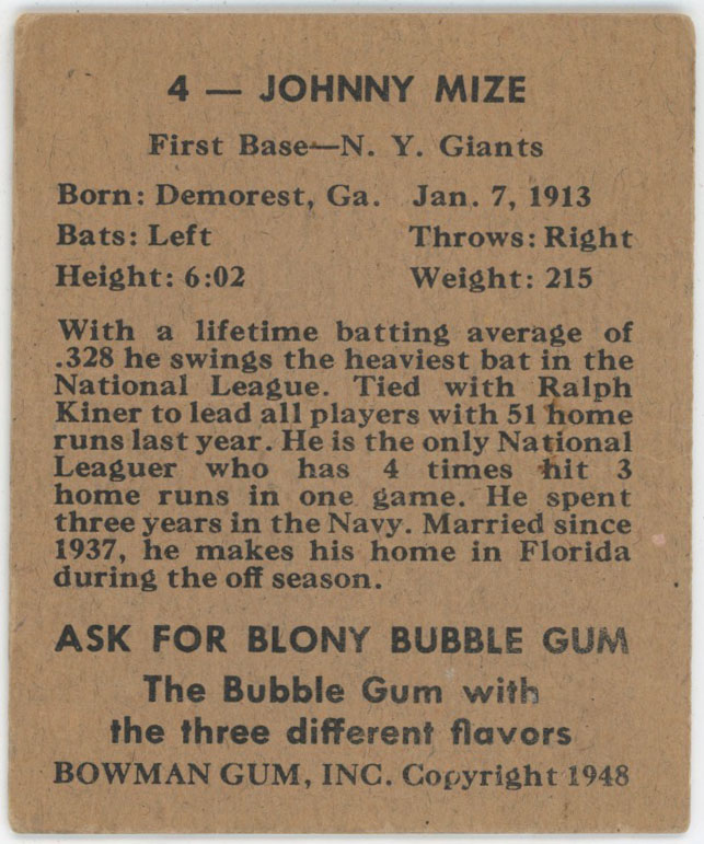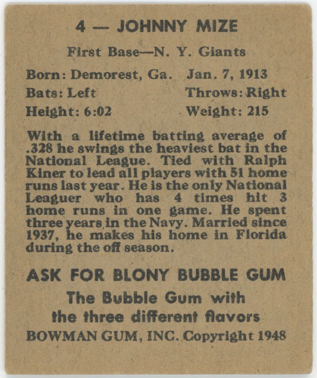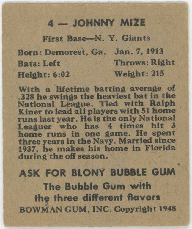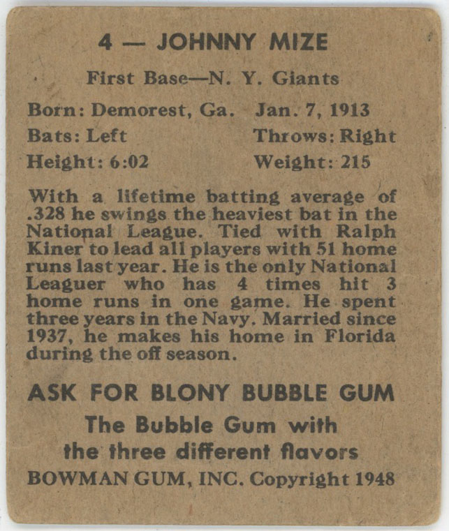 1948 Bowman 4 Mize Good