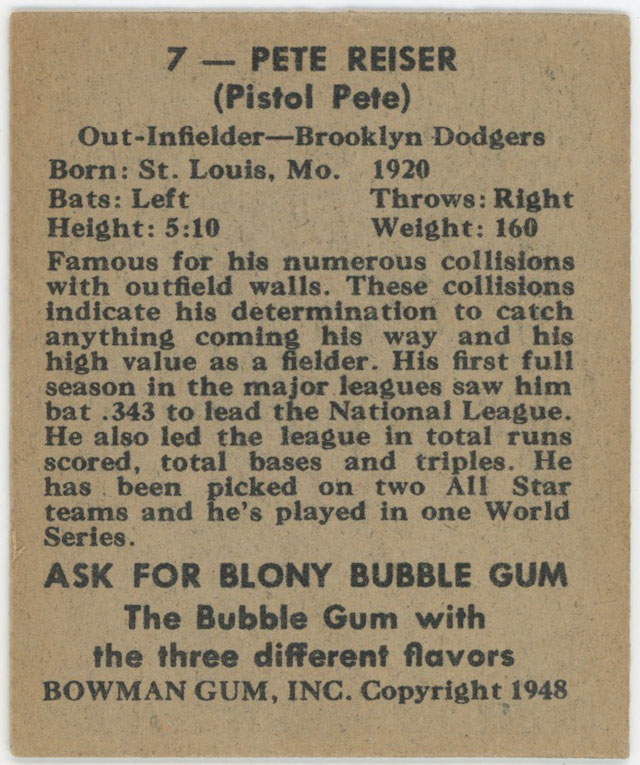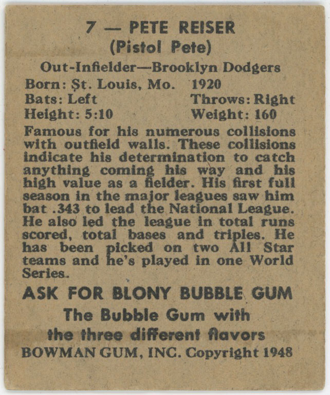 1948 Bowman 7 Reiser SP VG-Ex/Ex