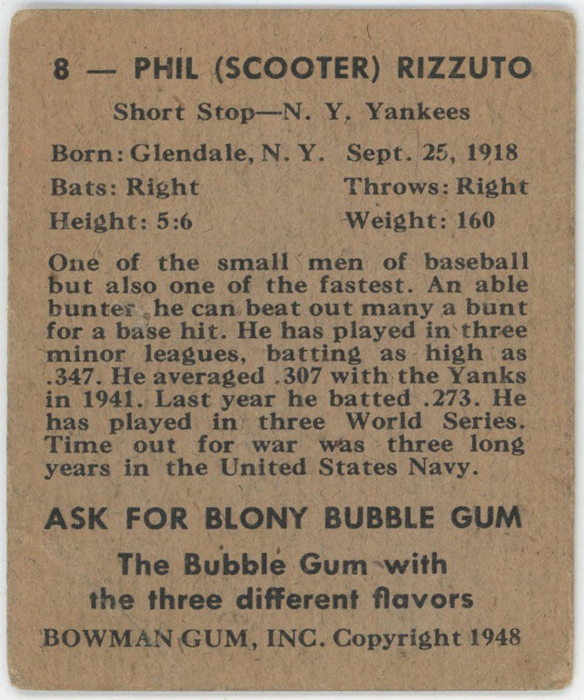 1948 Bowman 8 Rizzuto Poor