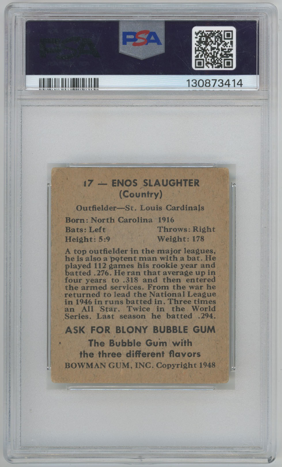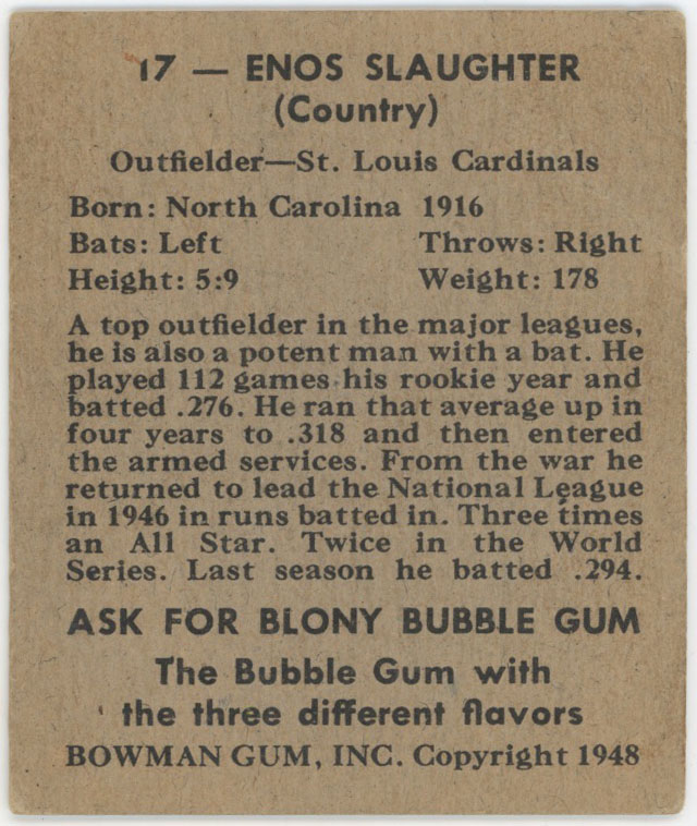 1948 Bowman 17 Slaughter PSA 3