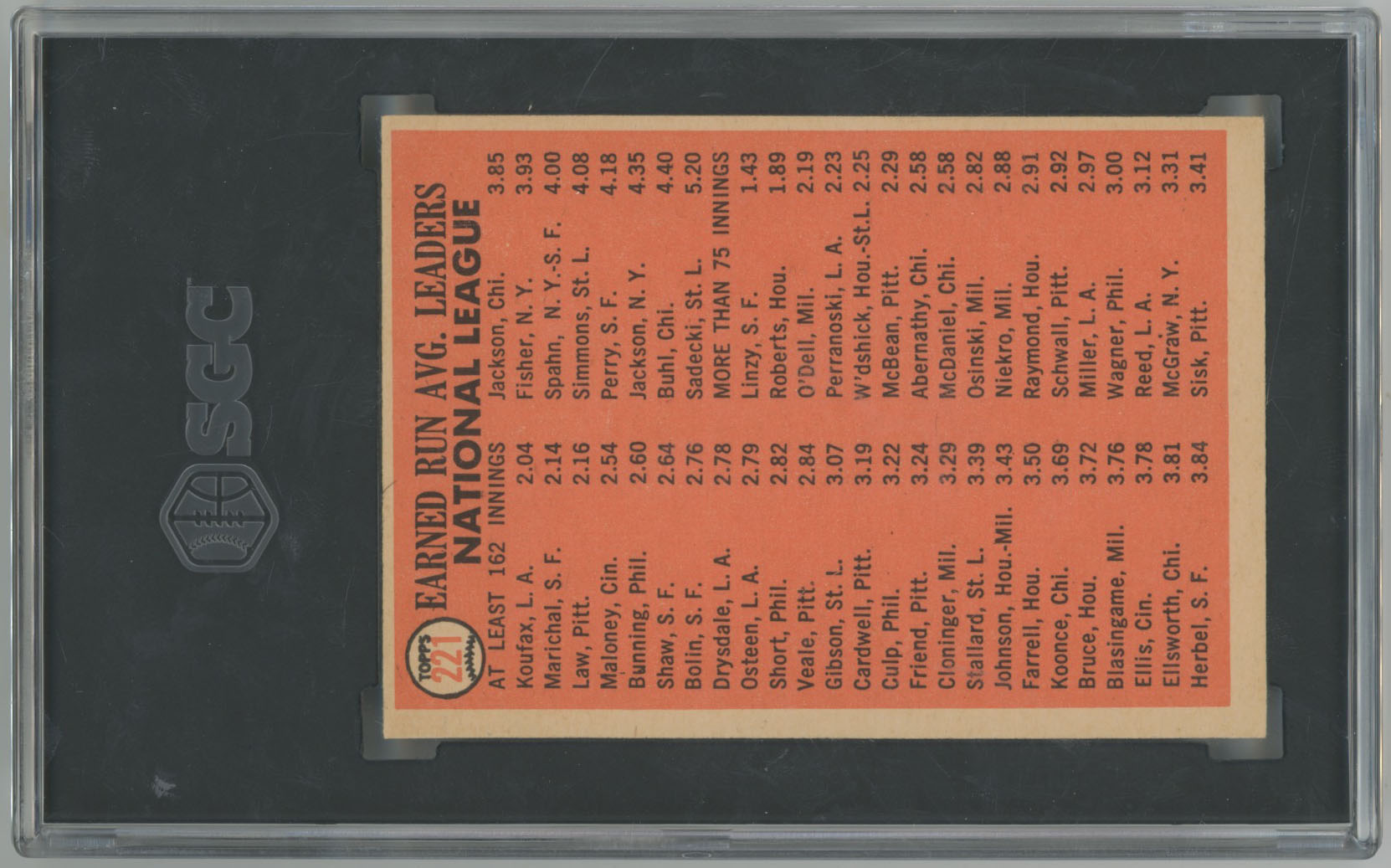 1966 Topps 221 NL ERA Leaders SGC 7.5