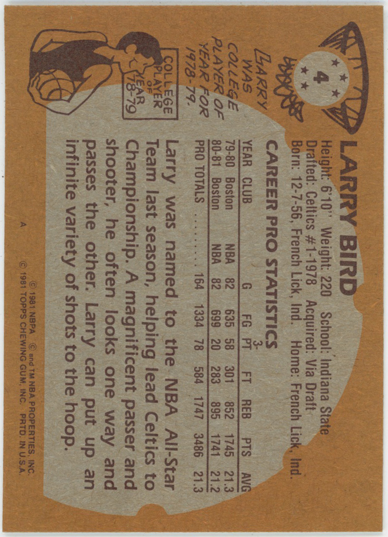 1981 Topps 4 Bird NM+