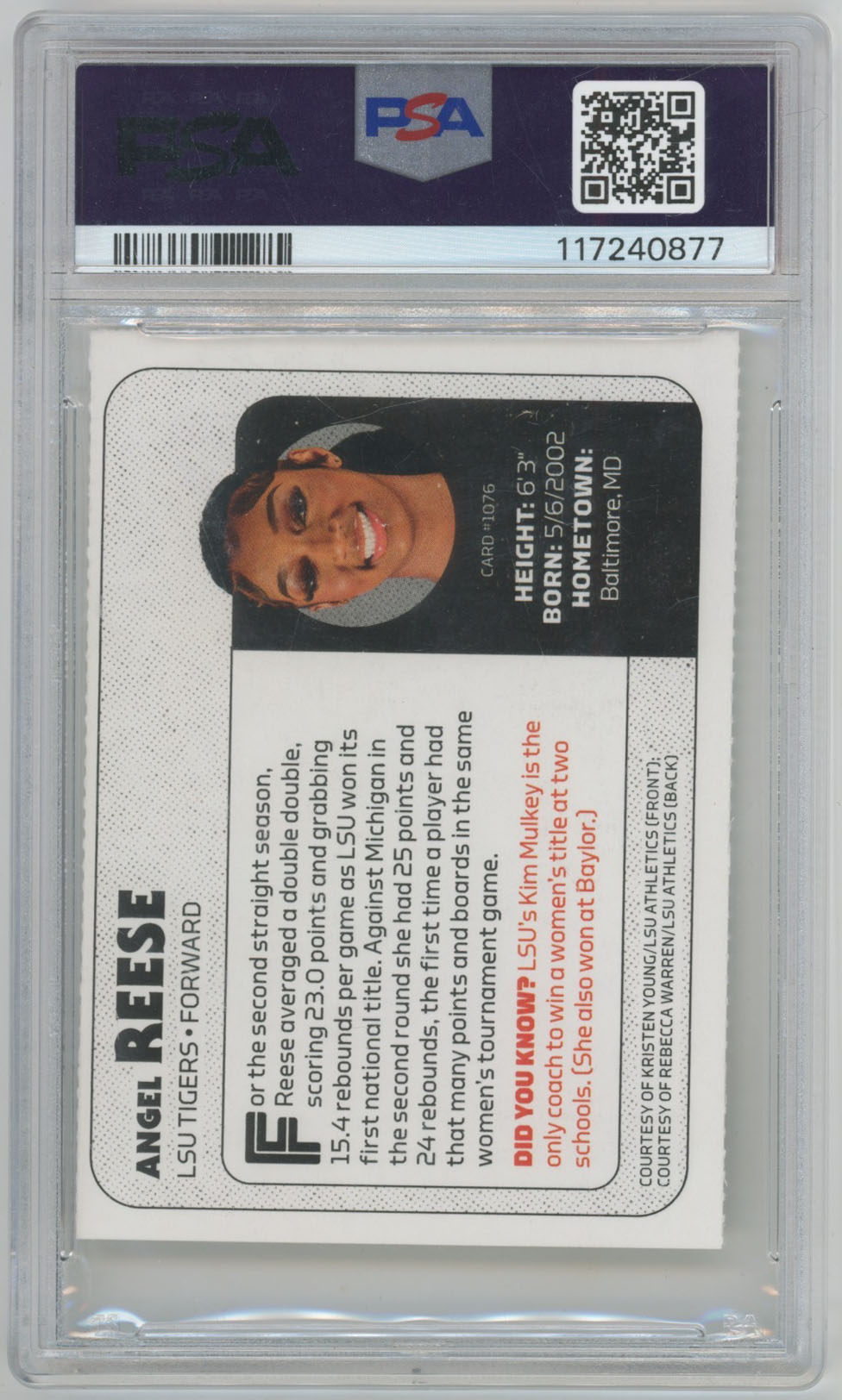 2003 S.I. For Kids Angel Reese Signed Card PSA Slabbed