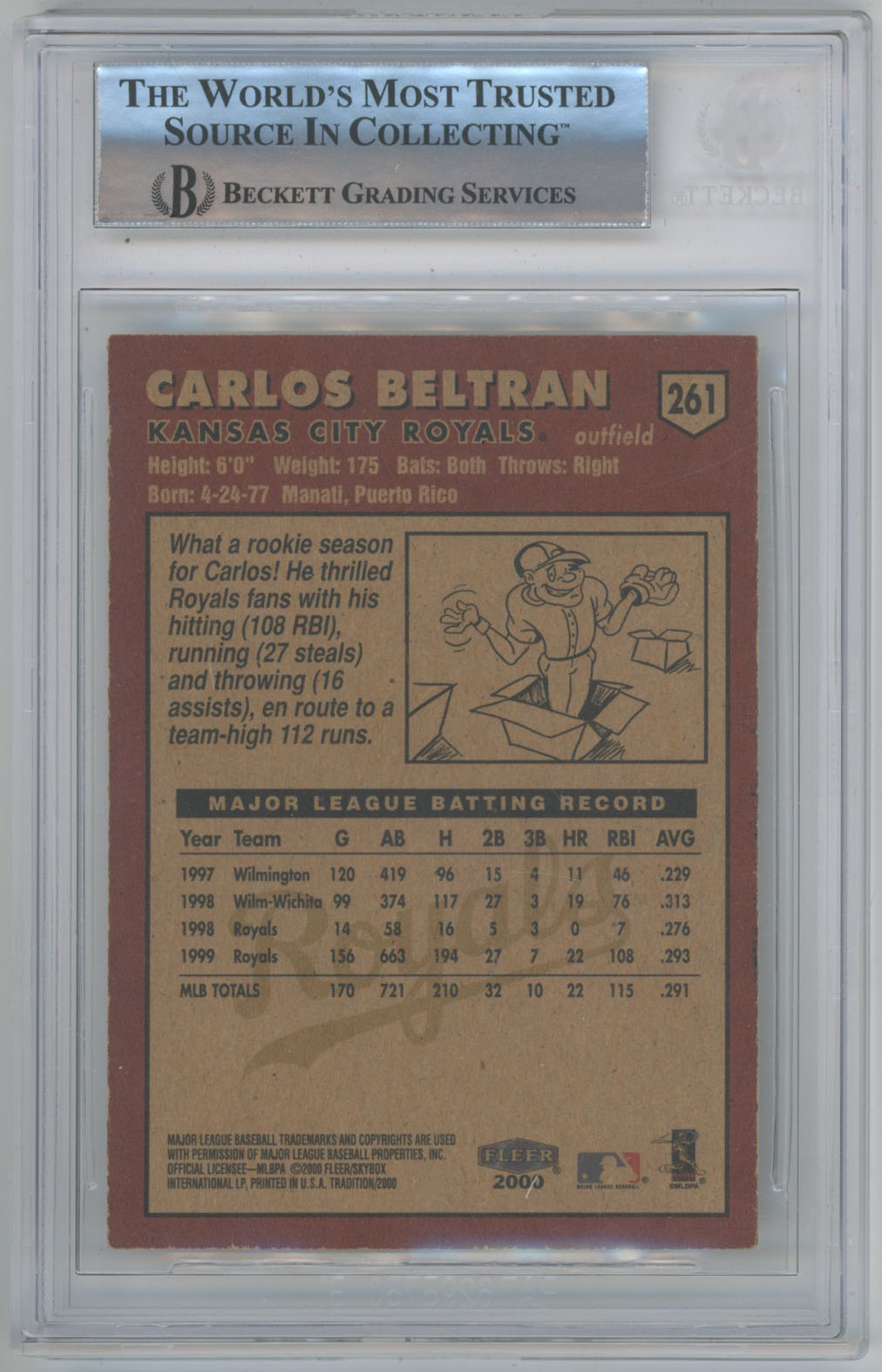2000 Fleer Tradition 261 Carlos Beltran Auto Card - Beckett Slabbed